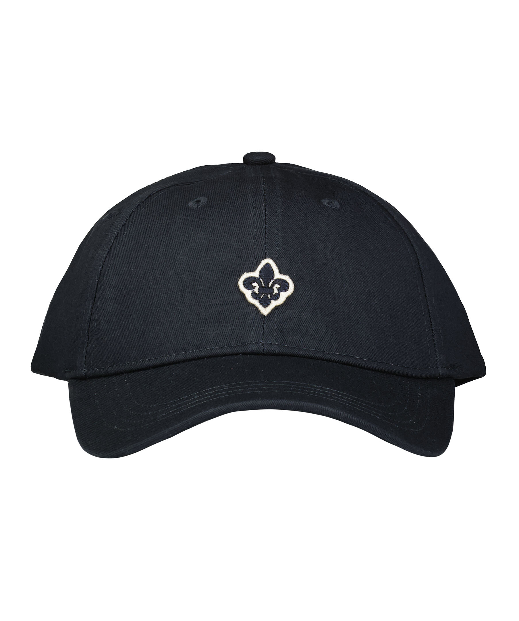 Marinblå keps från Morris. Tillverkad i 100% bomull. Broderad logotyp framtill och justerbar rem i tyg bak med spänne i metall. Lätt böjd skärm.
