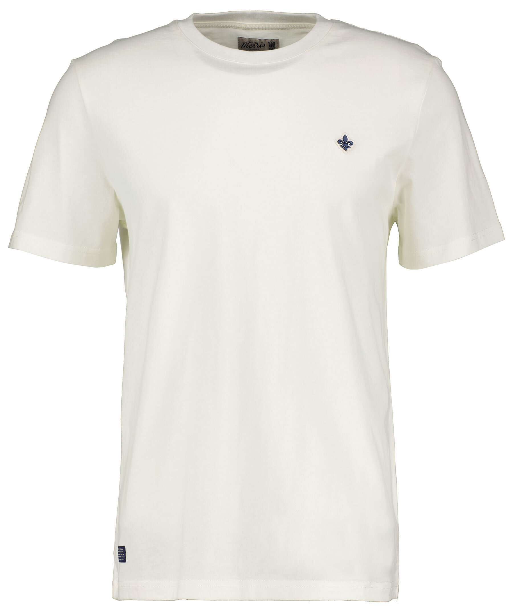 Vit t-shirt från Morris. Tillverkad i 100% bomull. Liten, broderad lilja på sidan av bröstet, normal till lite oversize i passform. Rundad halsringning.