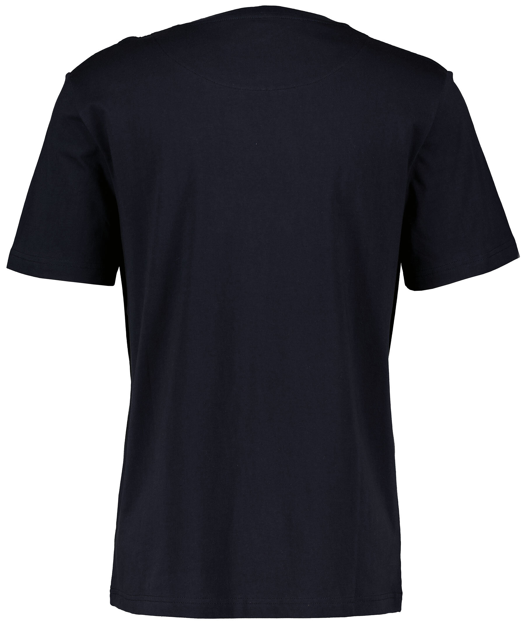Marinblå t-shirt från Morris. Tillverkad i 100% bomull. Liten, broderad lilja på sidan av bröstet, normal till lite oversize i passform. Rundad halsringning.