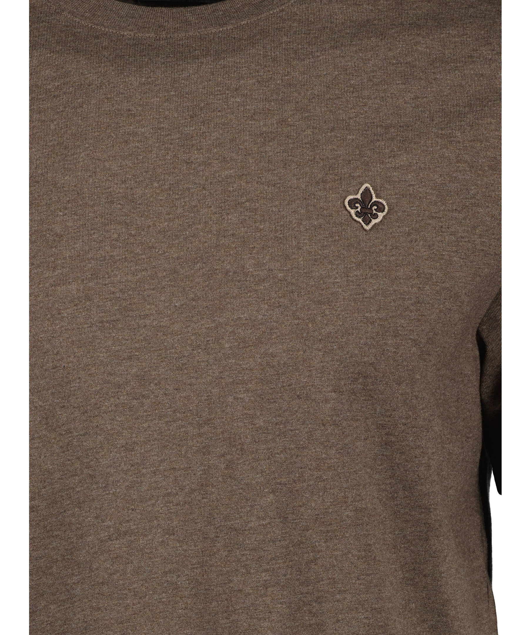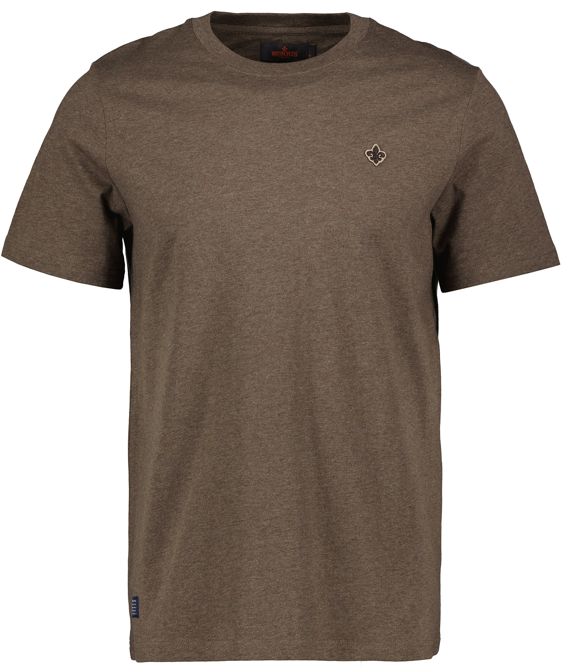 Brun t-shirt från Morris. Tillverkad i 100% bomull. Liten, broderad lilja på sidan av bröstet. Tröjan har en rak passform och rundad halsringning.