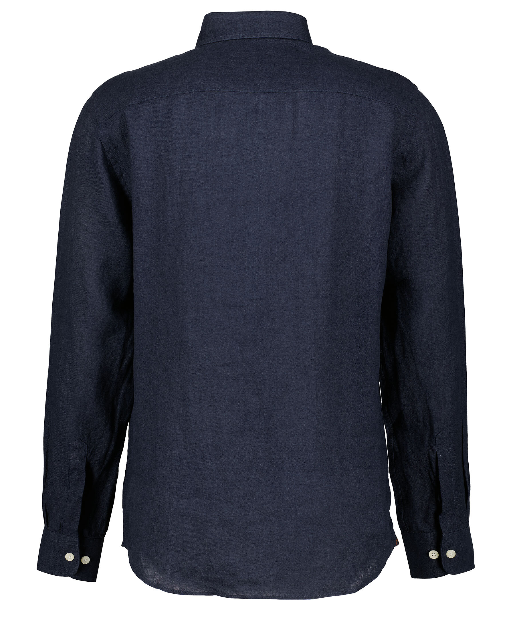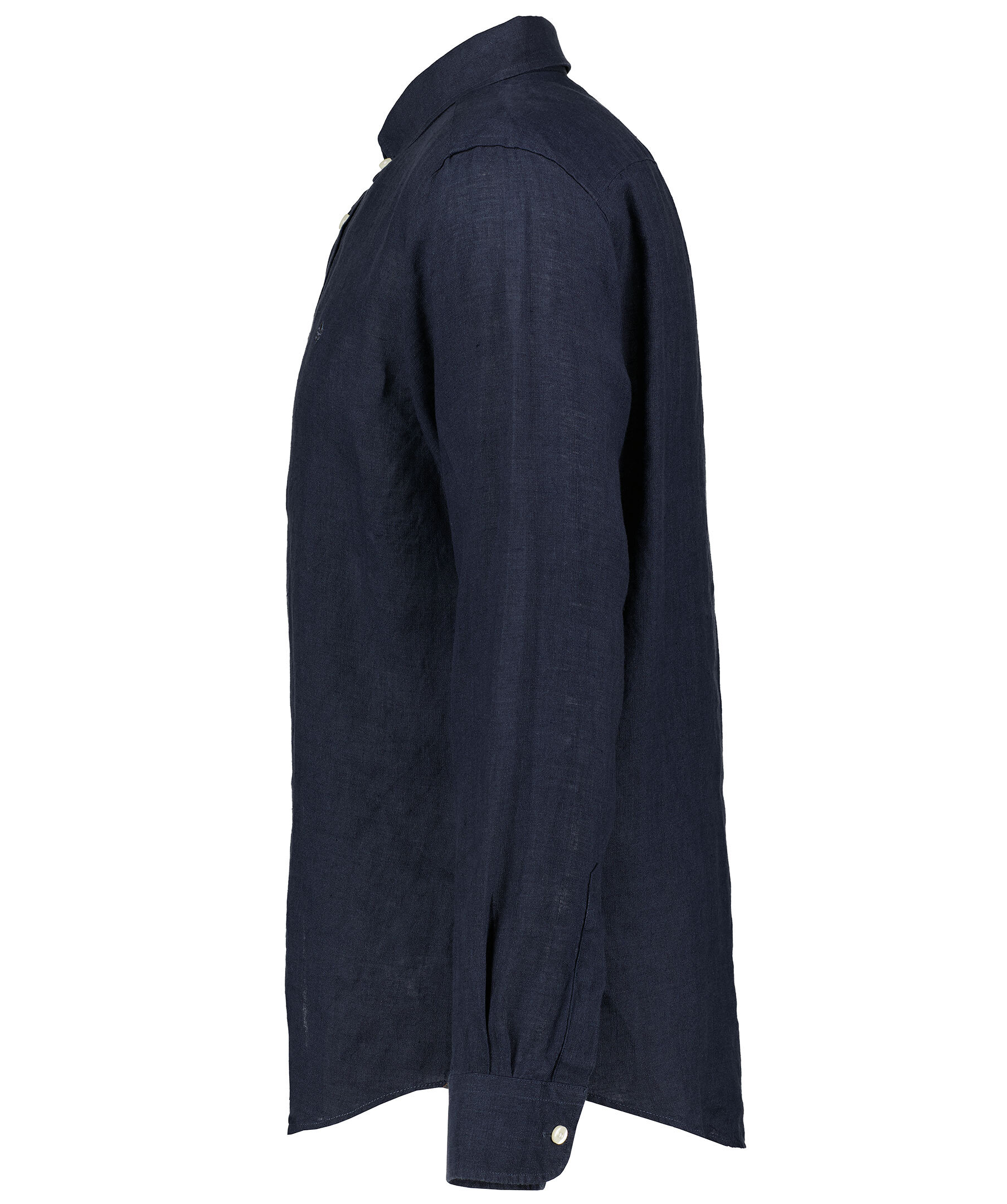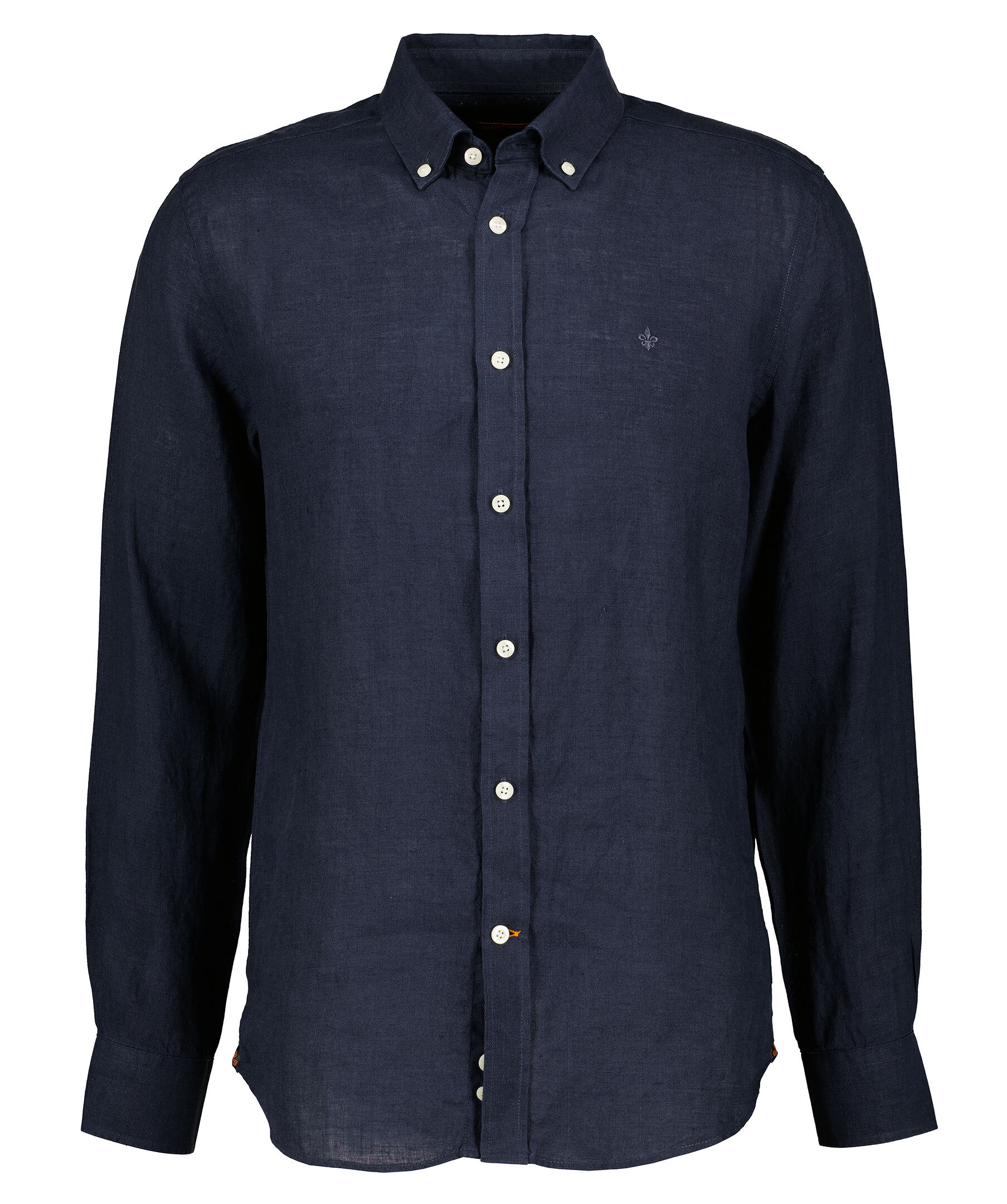 Midnattsblå långärmad linneskjorta från Morris. Skjortan är gjord i 100% linne och har en button-down krage. Broderad lilja på bröstet. Enkel manschett.