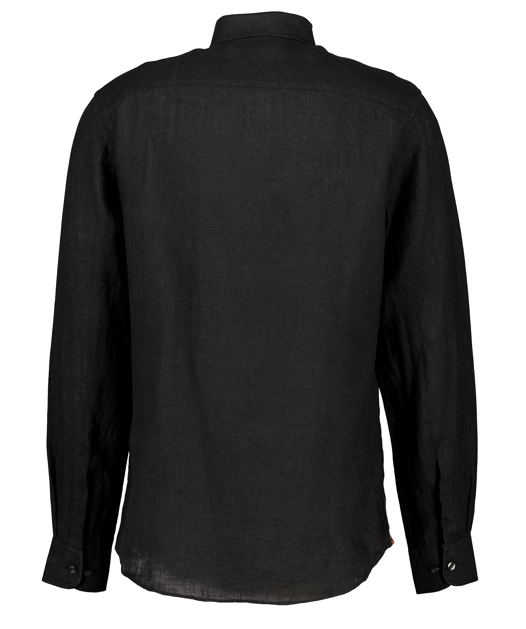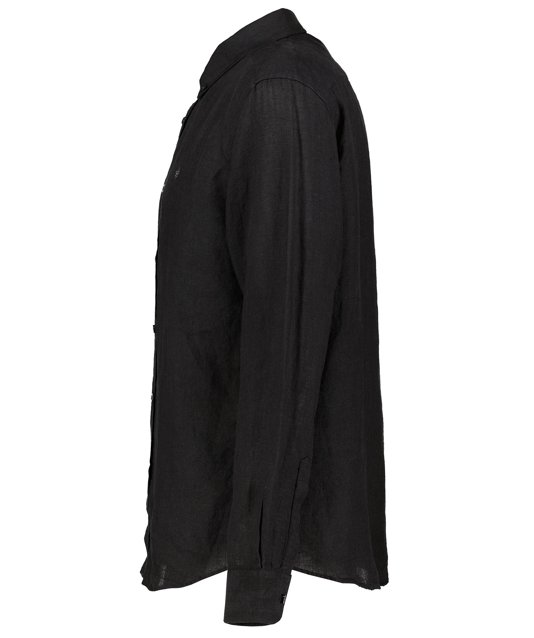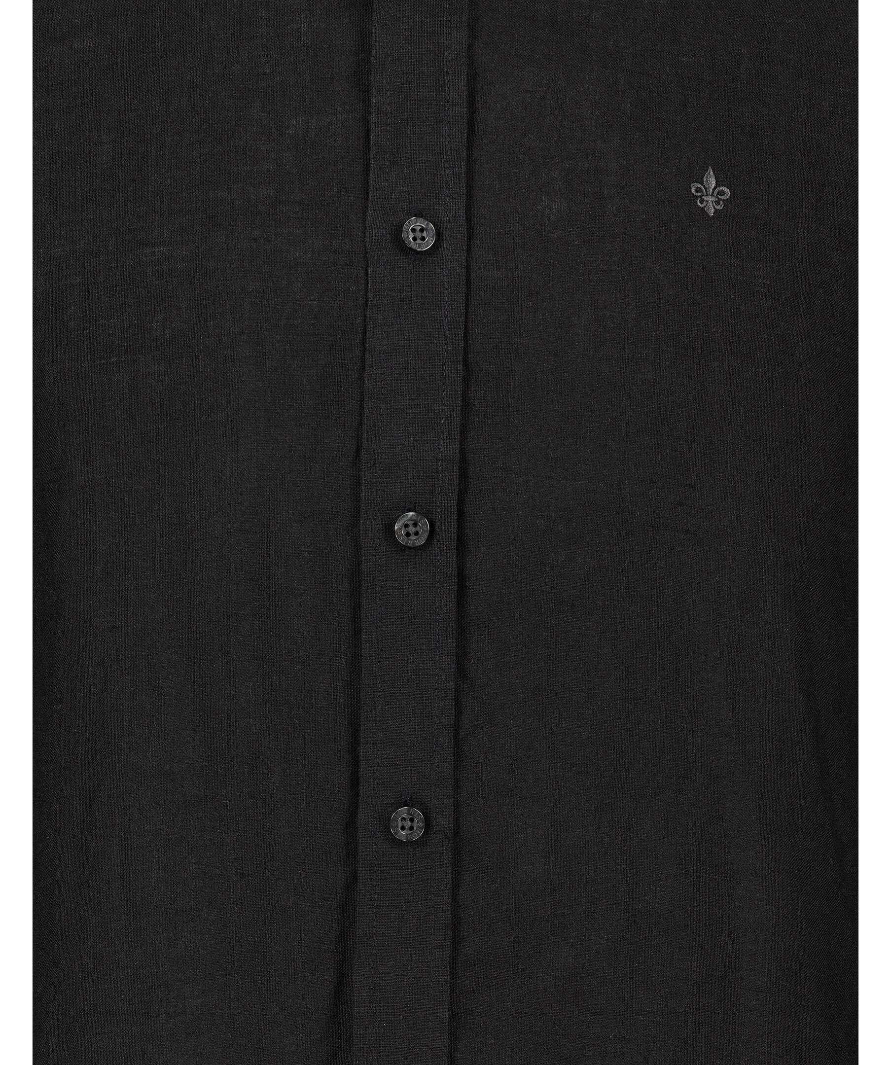 Svart långärmad linneskjorta från Morris. Skjortan är gjord i 100% linne och har en button-down krage. Broderad lilja på bröstet. Enkel manschett.