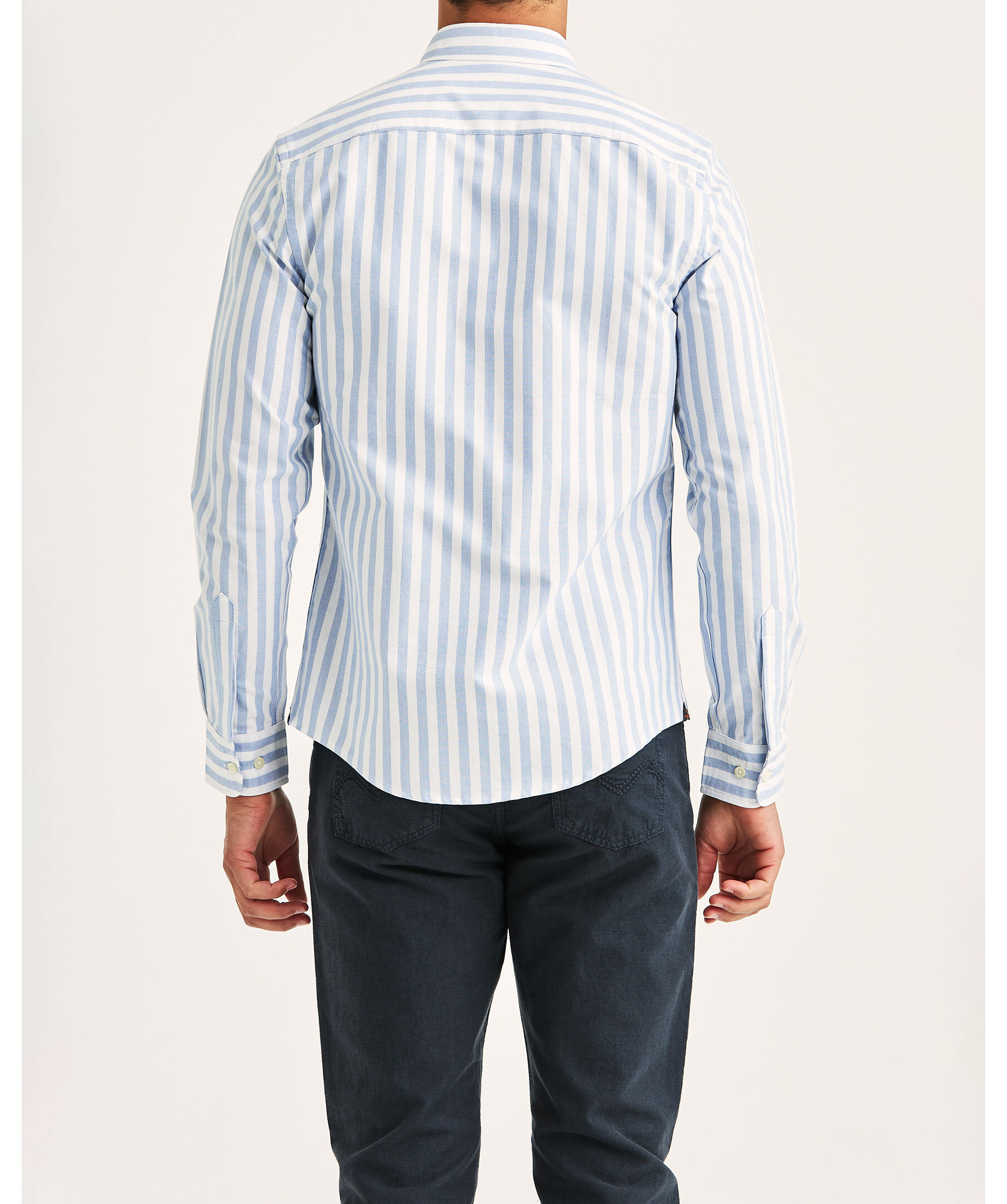 Douglas Oxford Stripe Shirt från Morris är vävd i en mjuk Oxford-bomull. Button down-kragen och den smala passformen ger ett modernt uttryck.