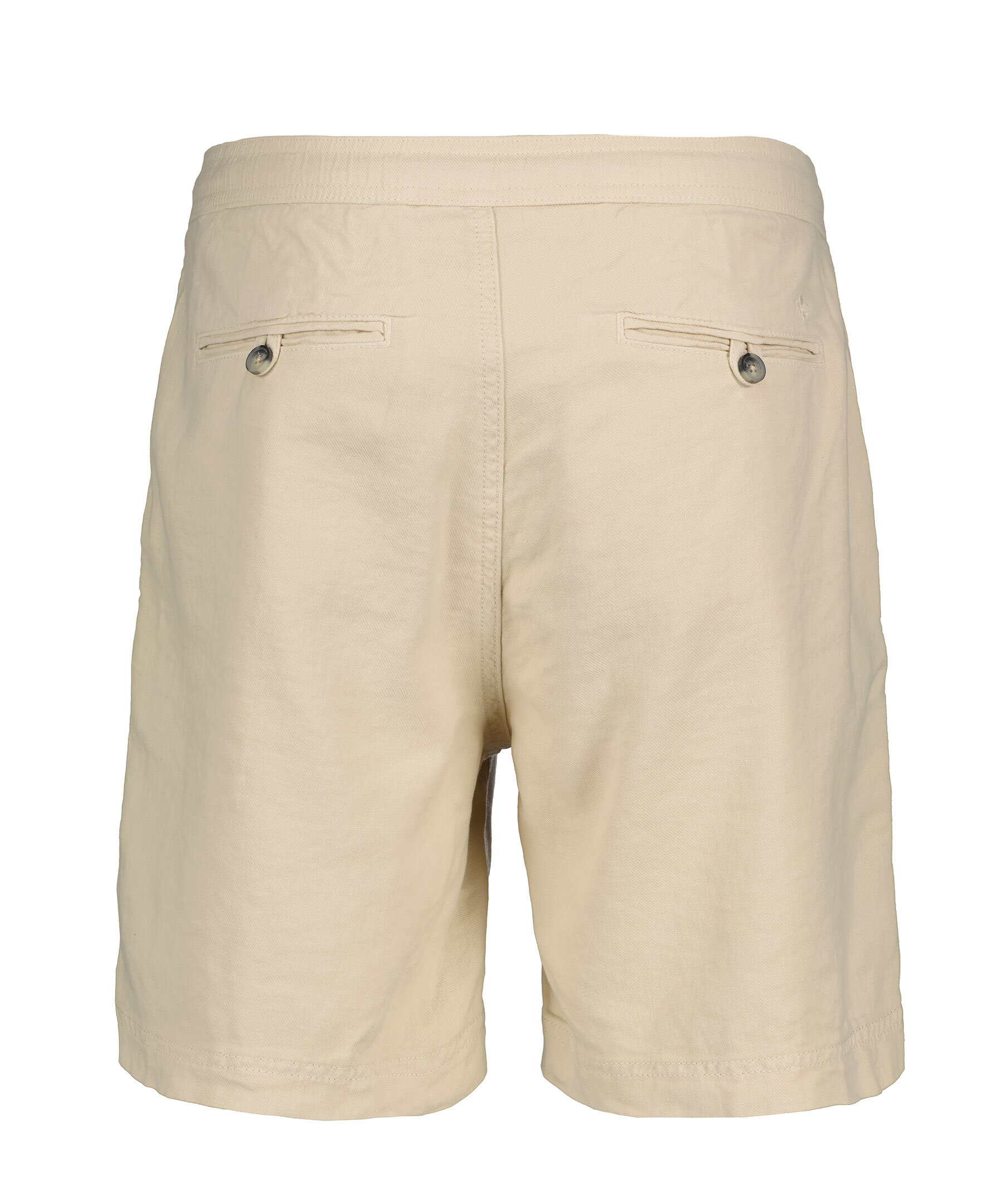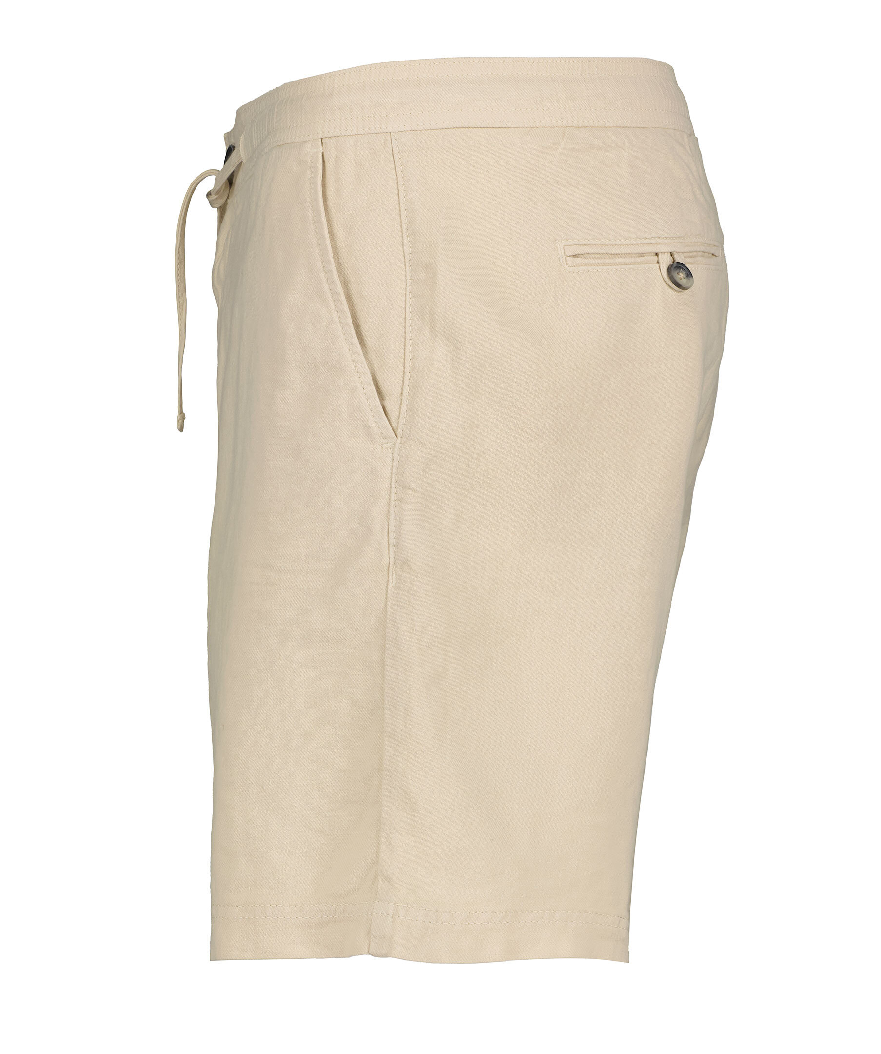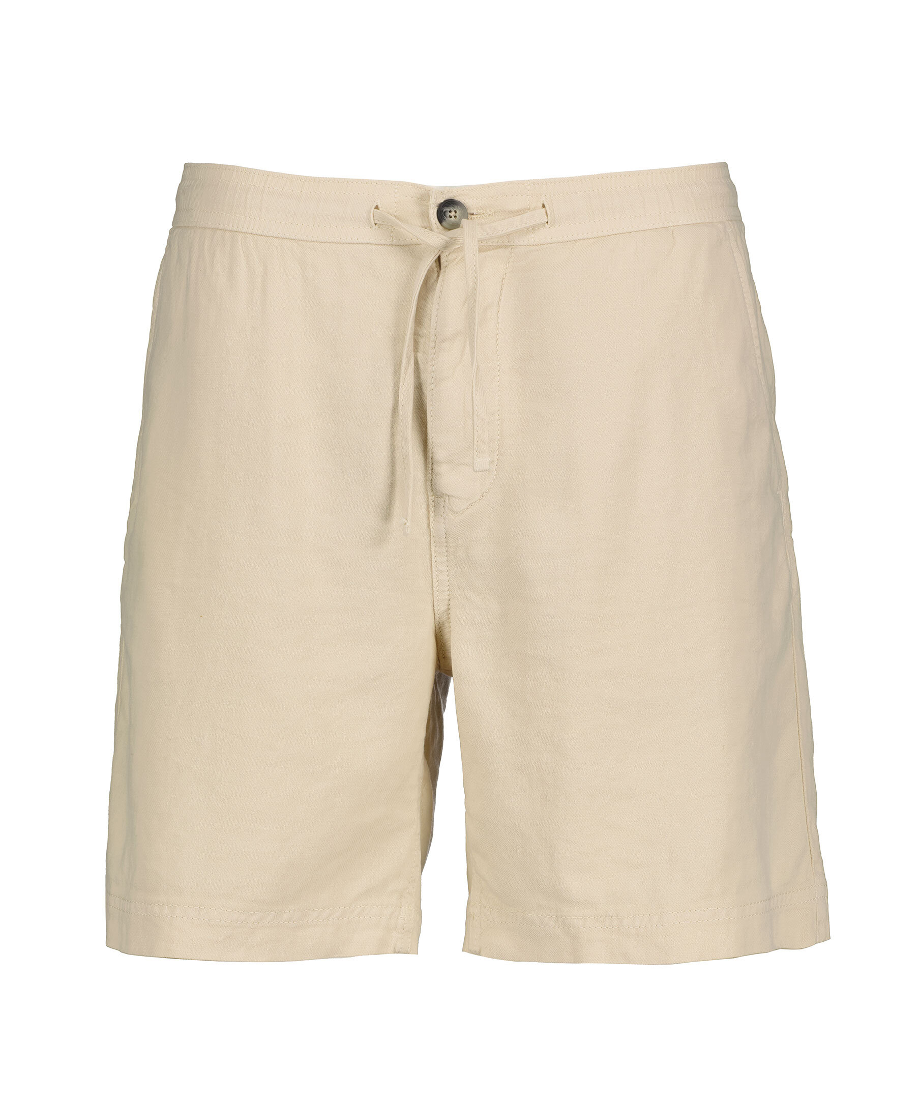 Benvita linneshorts från Morris. Sydd i en mjuk och stretchig bomull/lin mix från den spanska vävaren Dagiulio och sedan plaggtvättad för att skapa ett lätt urtvättat utseende. De har en avslappnad passform och en elastisk midja med knyt – allt för extra komfort.
