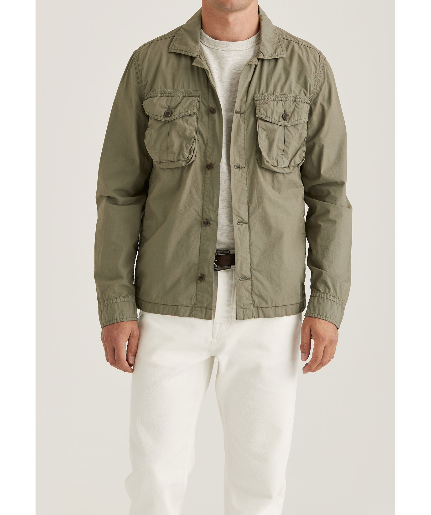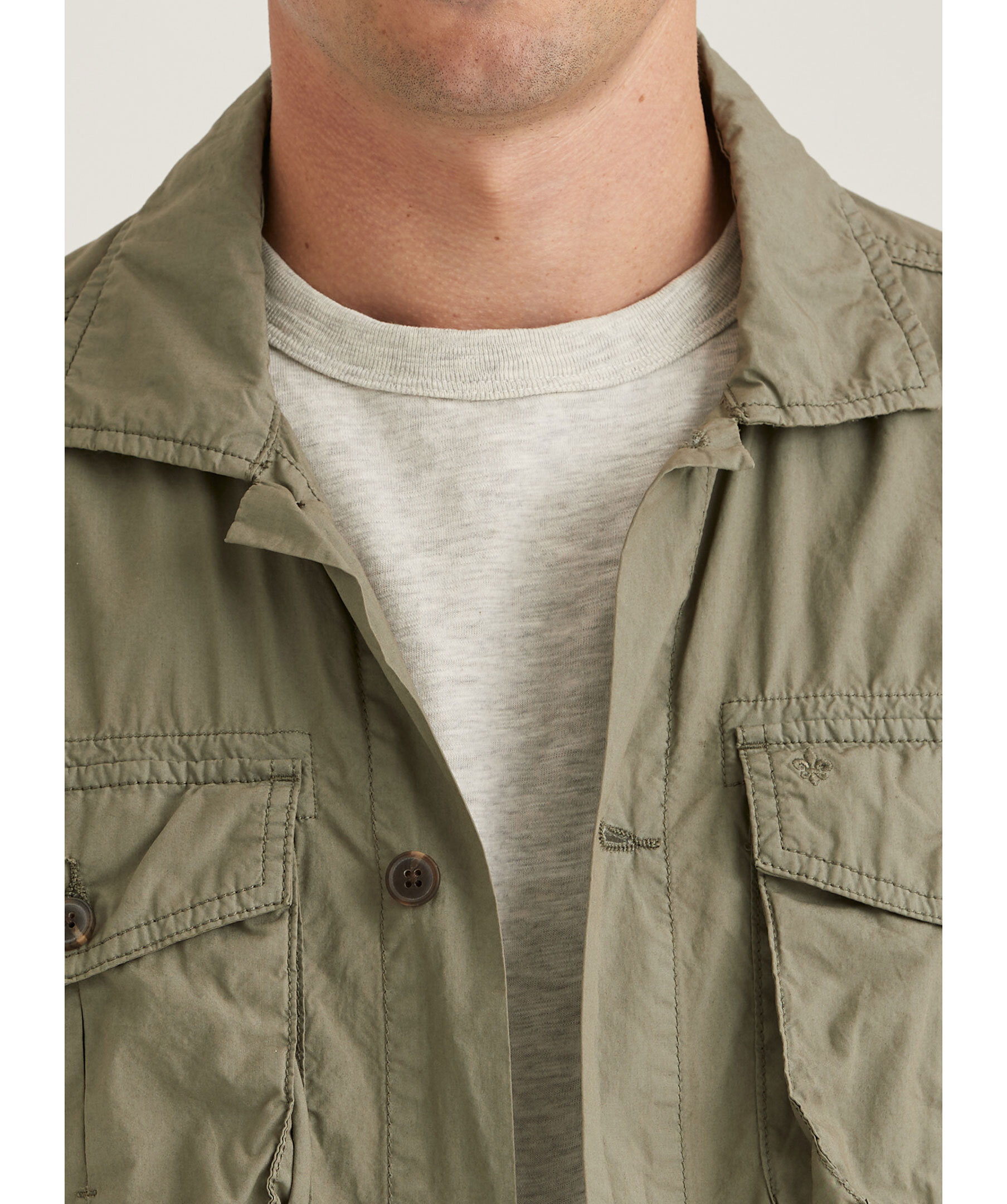 Olivgrön Overshirt från Morris. Stängs framtill med knappar. Två snedställda fickor framtill. Två bröstfickor framtill som stängs med lock och knapp, broderad lilja på vänster ficka. Enkla manschetter. Regular passform. Tillverkad i 100% Bomull.