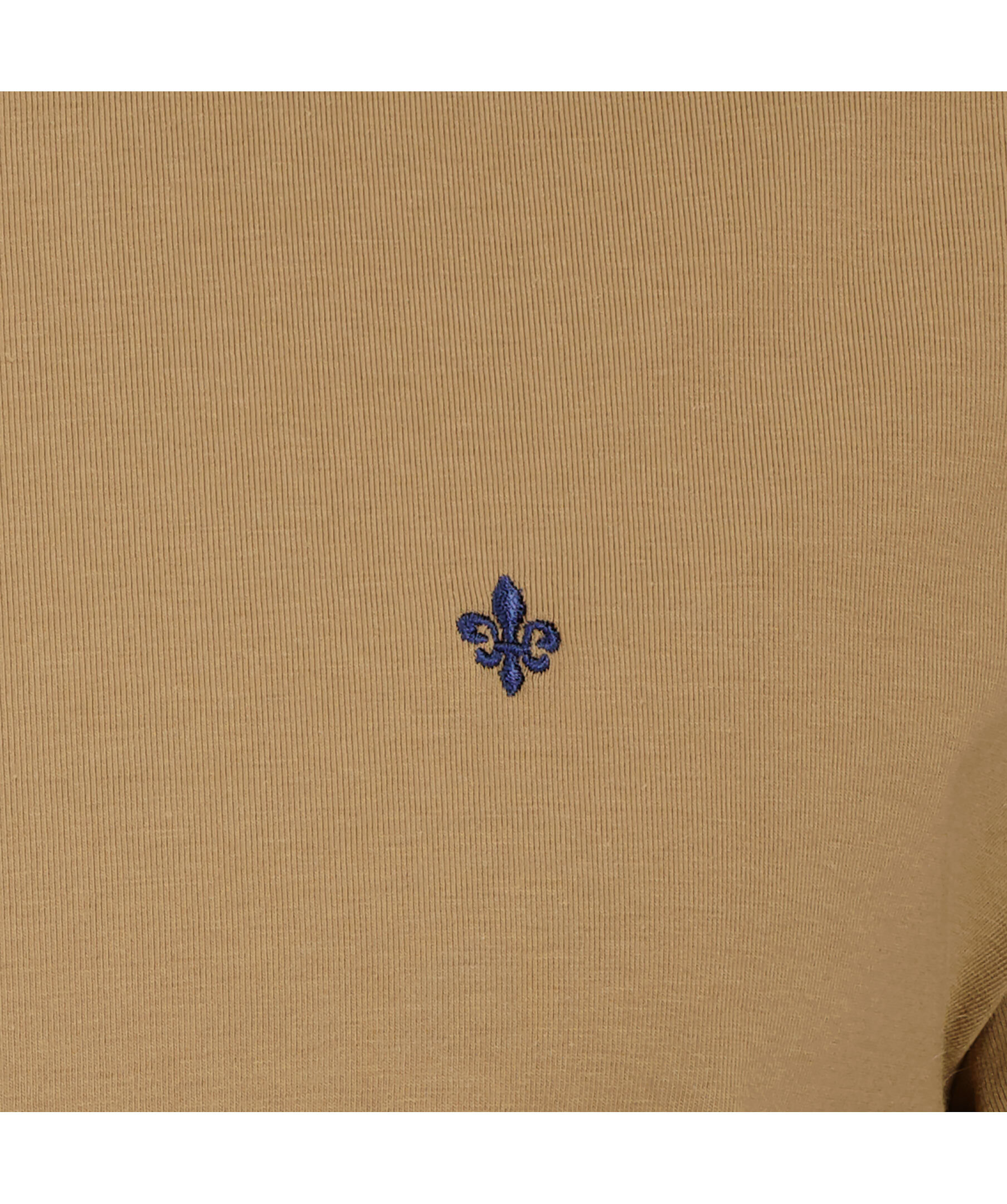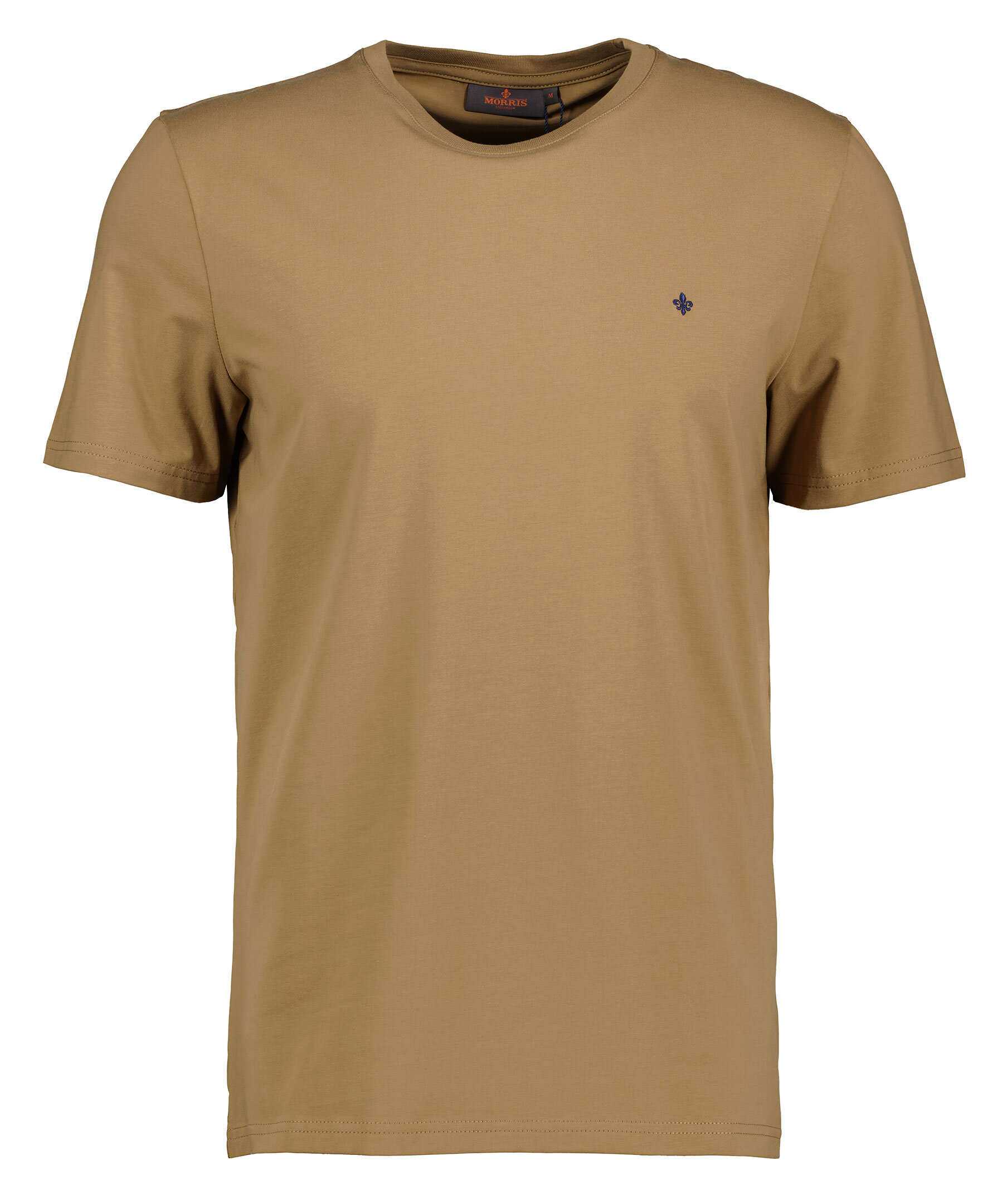 Kamelfärgad t-shirt från Morris. Lätt t-shirt som är otroligt mjuk och flexibel samtidigt som den behåller formen både när den används och över tid, tack vare dess 4% elastan. Morris signaturlilja broderad på bröstet. Smal passform.