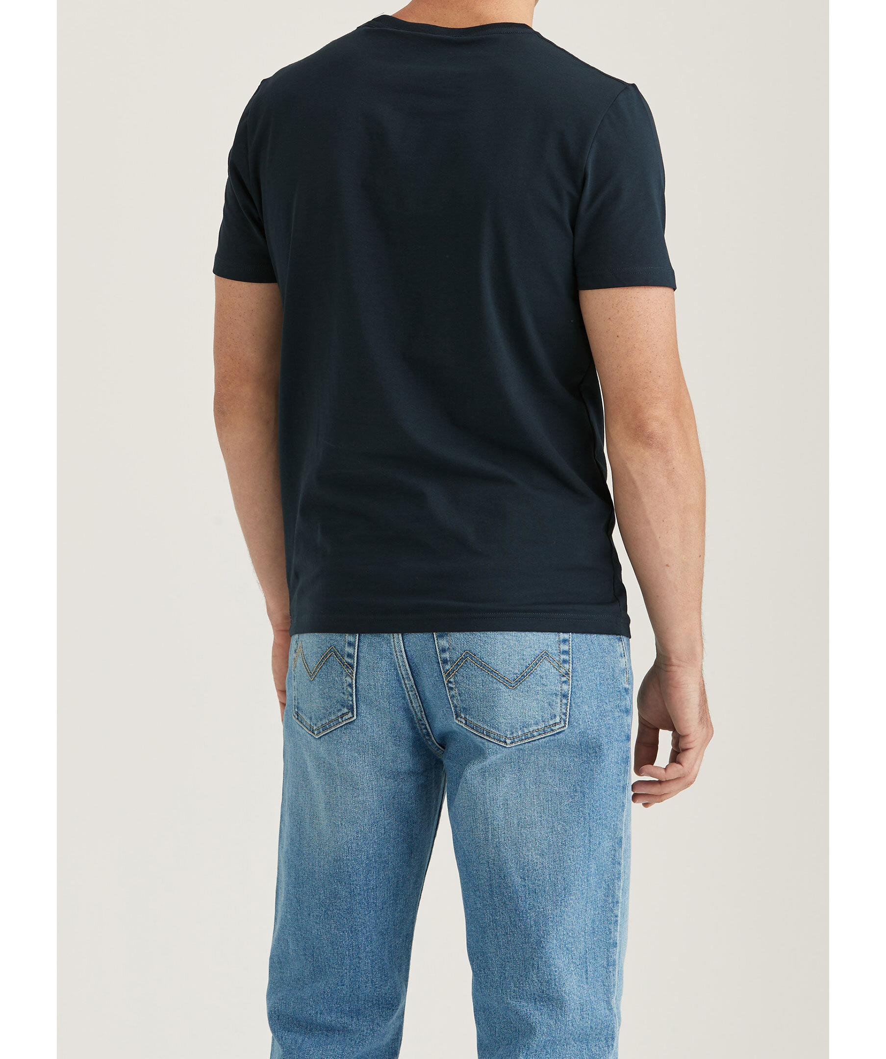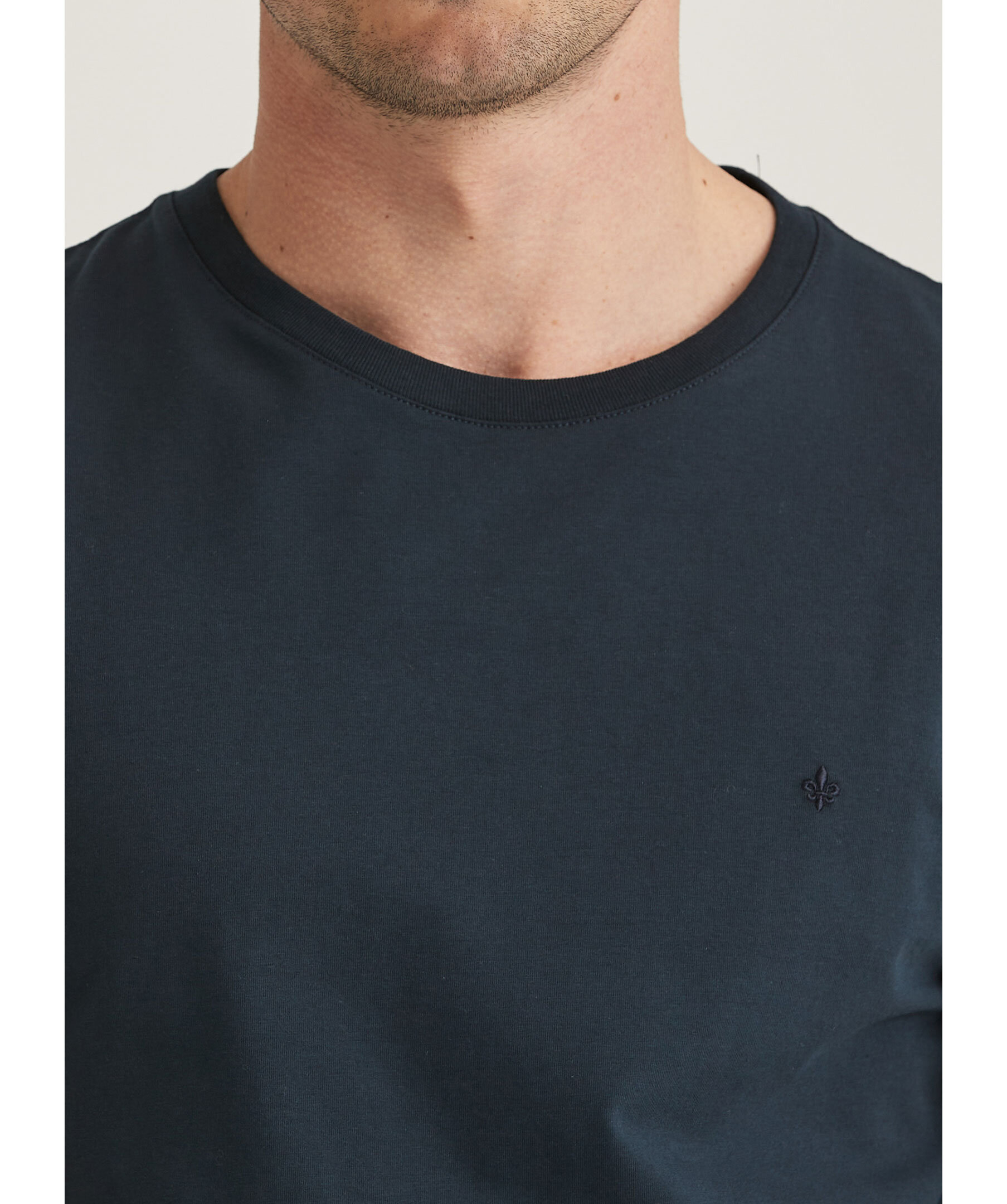 Marinblå t-shirt från Morris med smal passform. Liten, broderad lilja på sidan av bröstet, normal passform. Rundad, ribbad halsringning. Tillverkad i 100% bomull.