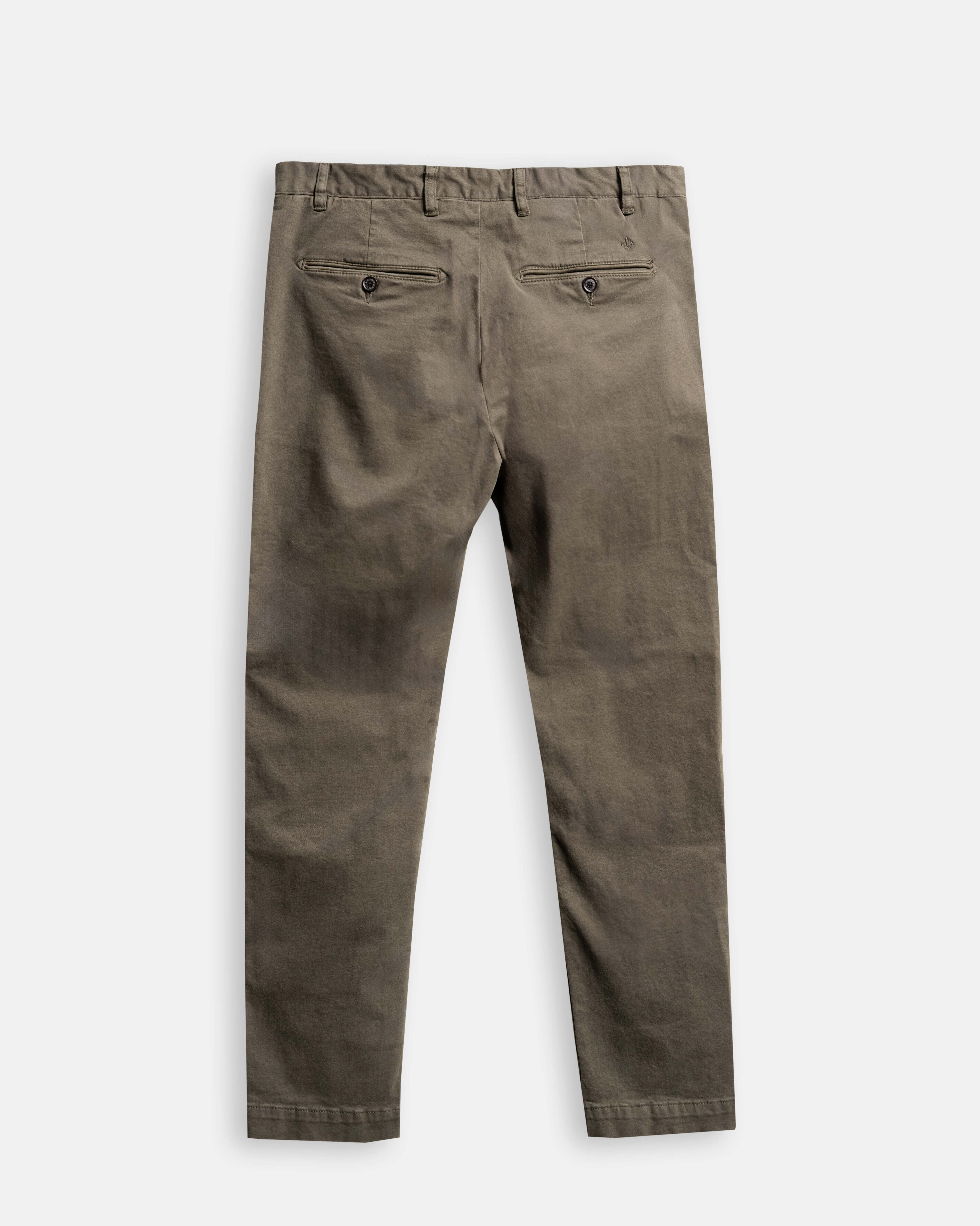 Gröna chinos från Morris. Tillverkad i en borstad bomullssatäng med medelhög midja och ett smalt ben. Jeffrey Brushed Chino stängs med knapp, har två sidfickor och ett diskret broderi över ena bakfickan.