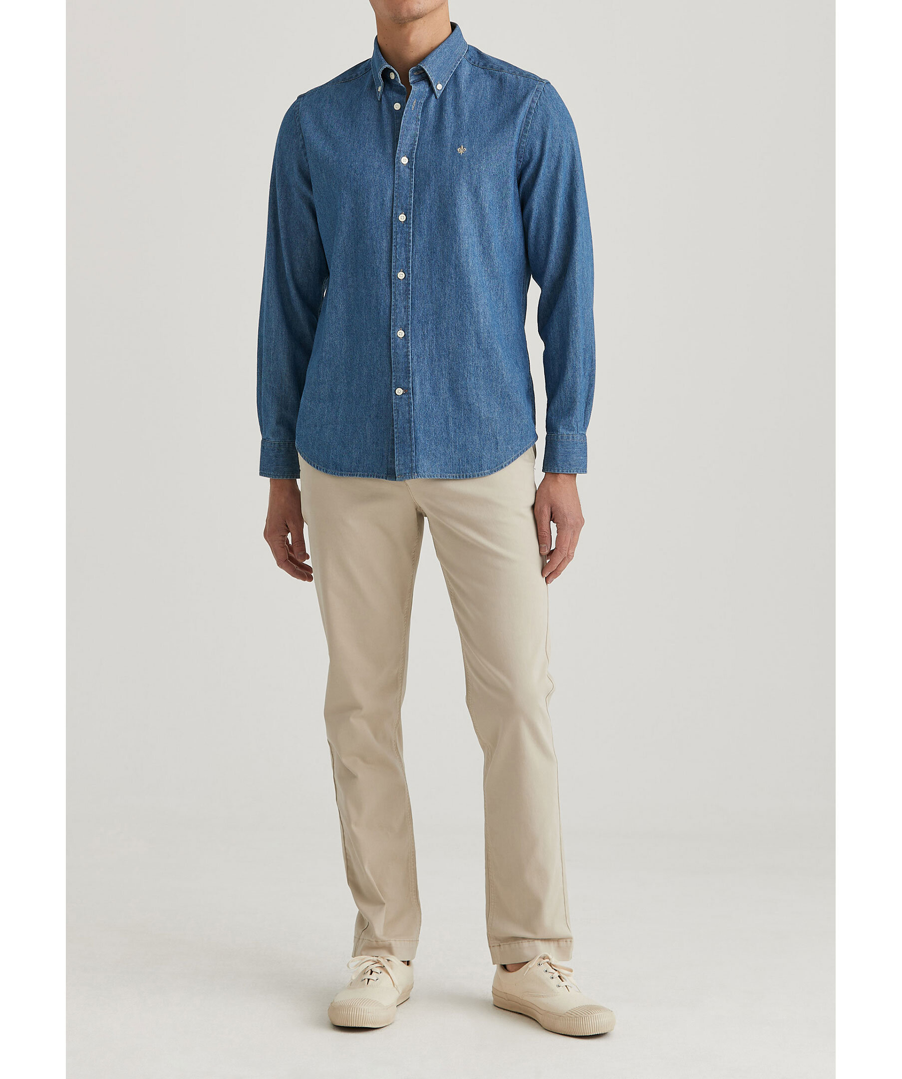 Ljusa, khakifärgade chinos från Morris. En välkurerad garderob bör innehålla minst ett par klassiska chinos - mjuk och stretchig med en perfekt passform. Tillverkad i en borstad bomullssatäng med medelhög midja och ett smalt ben. Jeffrey Brushed Chino stängs med knapp, har två sidfickor och ett diskret broderi över ena bakfickan. Smal passform.