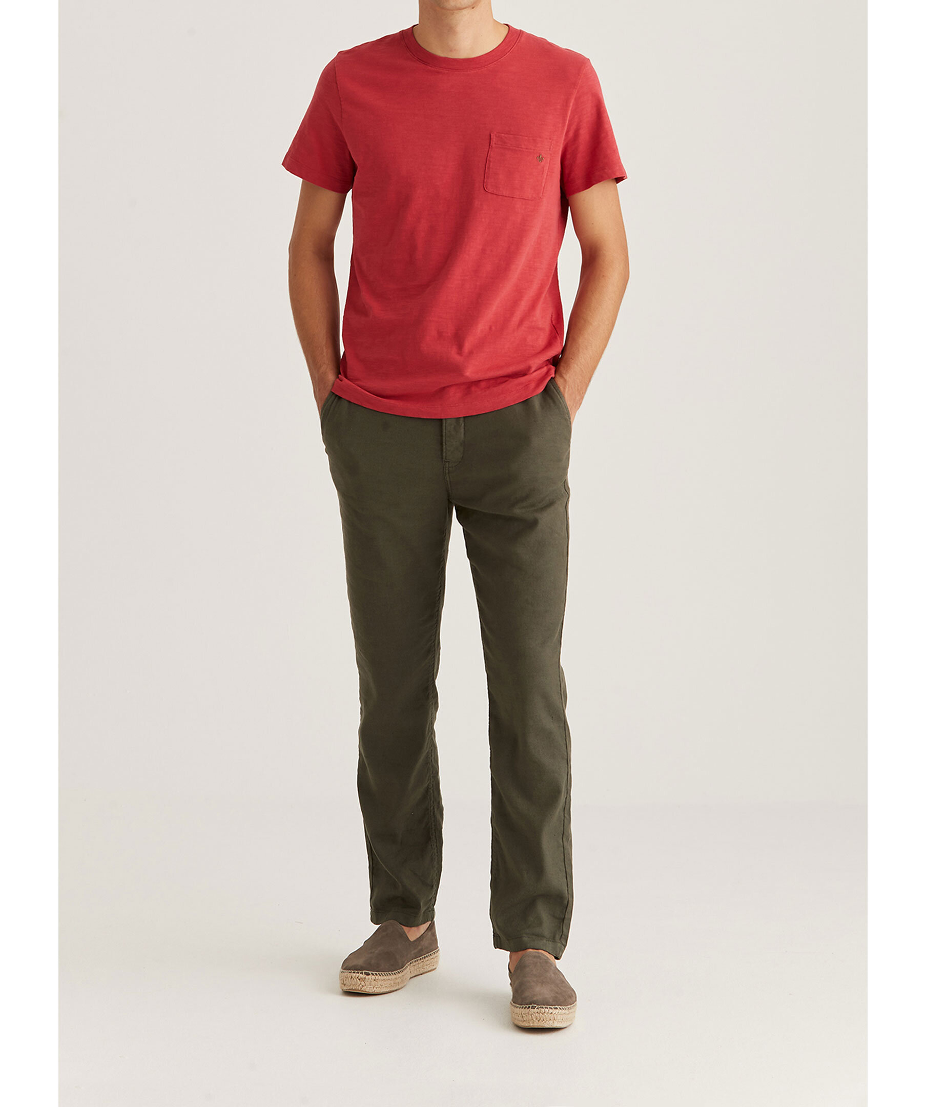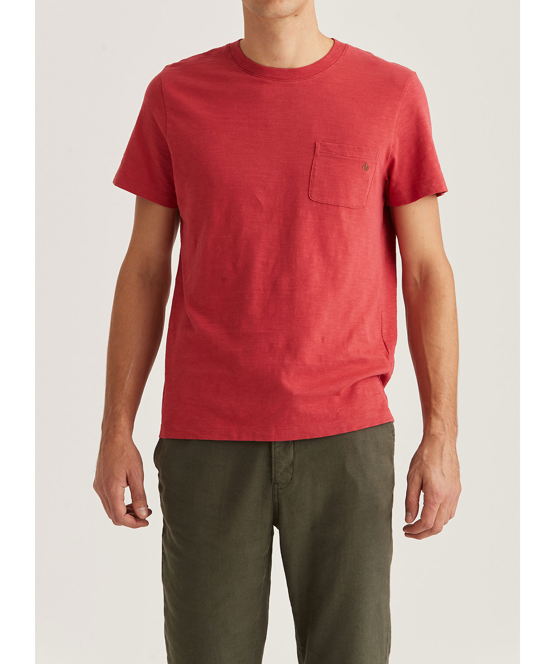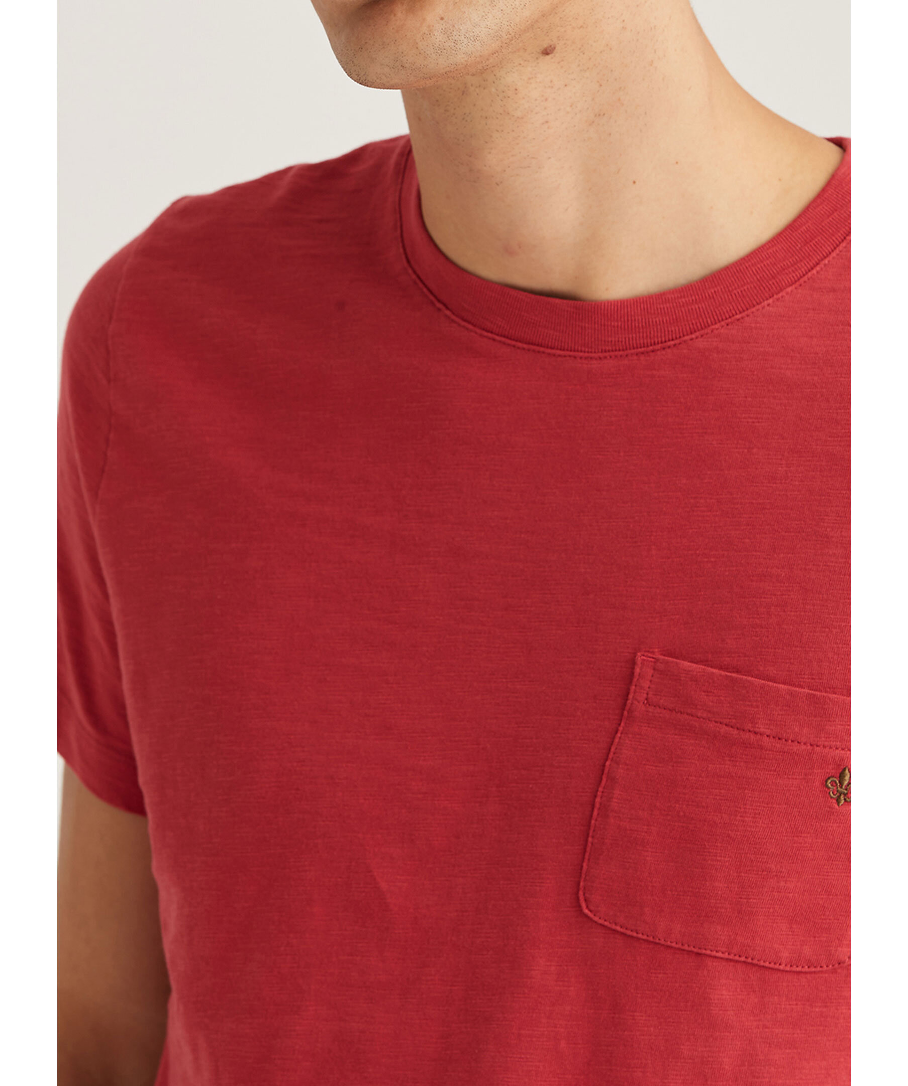Röd melerad T-shirt från Morris. Rundad halsringning med ribbstickad mudd. Bröstficka på vänster sida med broderad logotyp. Tillverkad i 100% bomull.