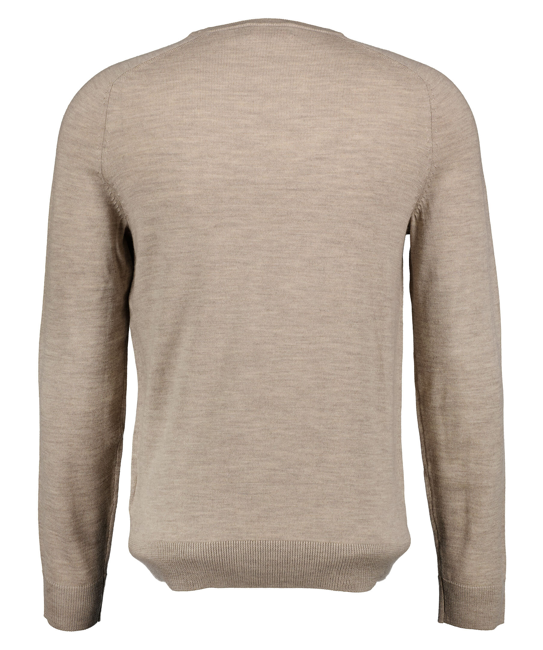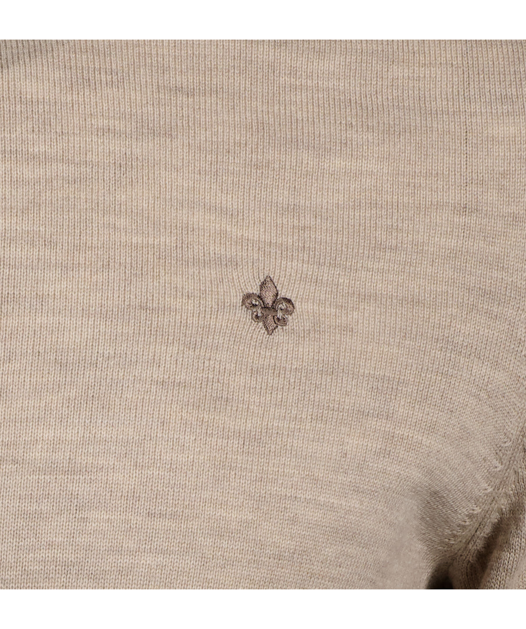 Beige finstickad pullover från Morris. Tröjan är gjord i ett fint merinoulltyg, ribbstickade muddar och en broderad fransk lilja på bröstet.