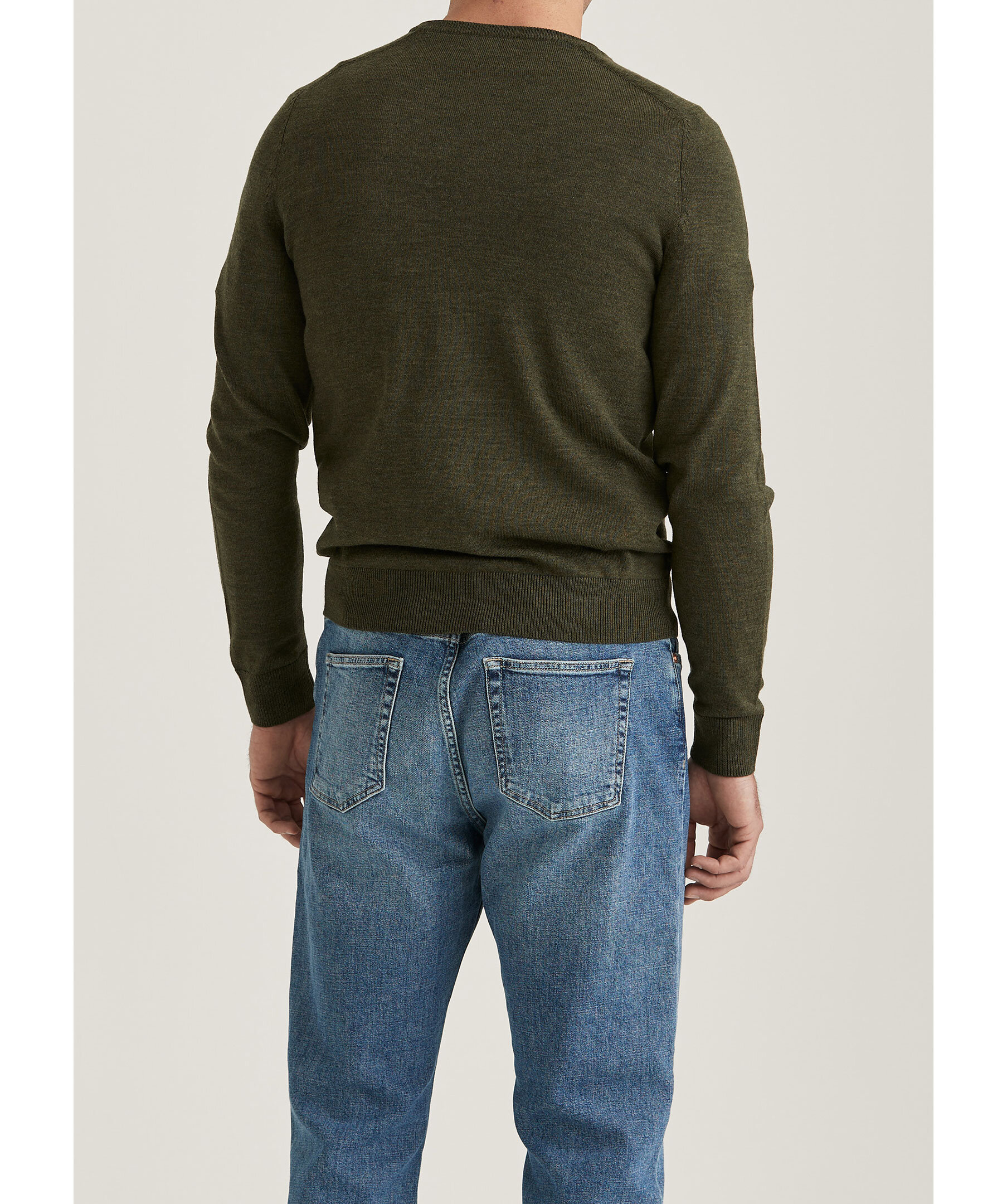 Morris Merino Oneck - Olivgrön