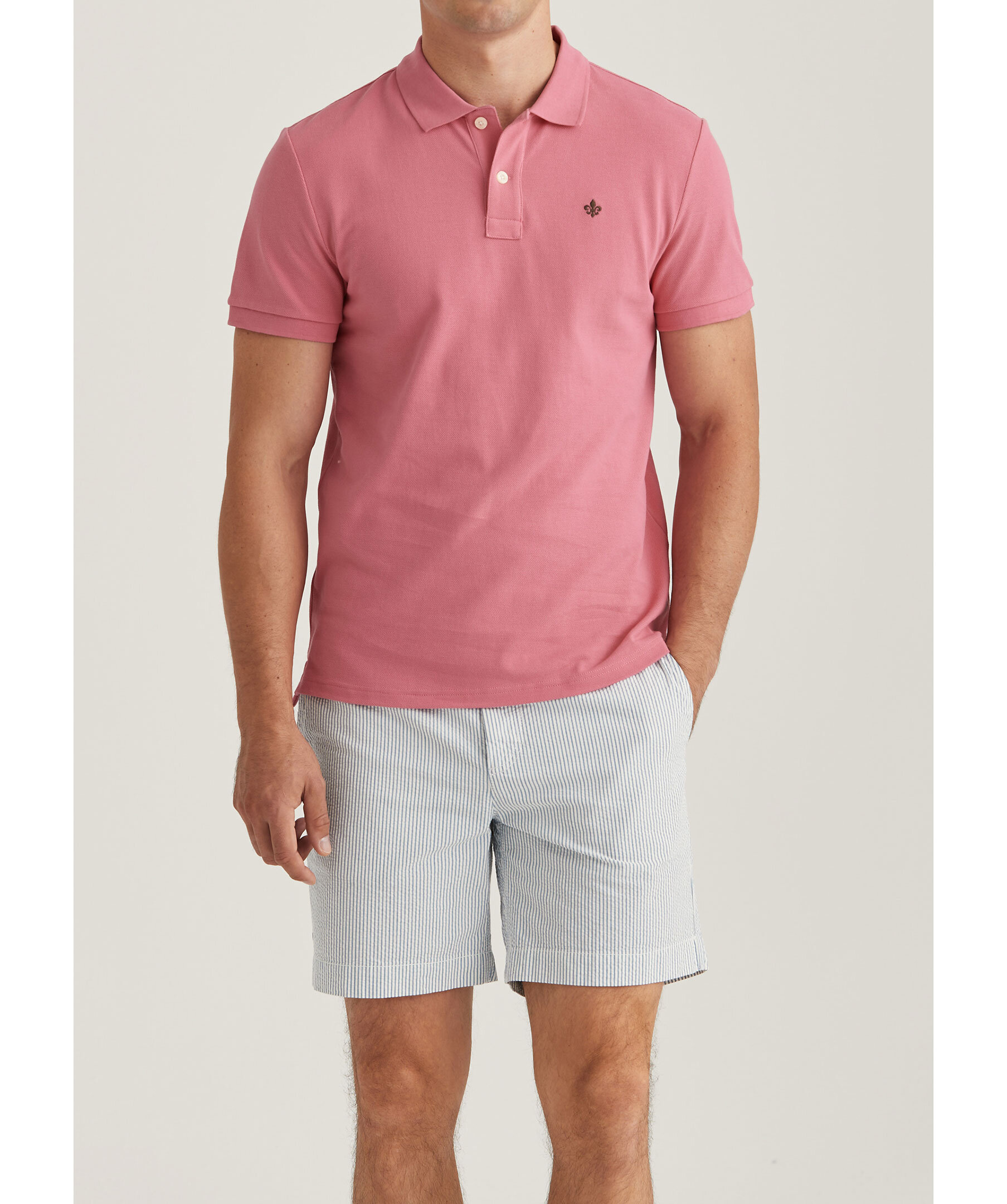 Rosa pikétröja från Morris. Pikén har krage med två knappar, ribbade detaljer och en broderad lilja på bröstet. Tillverkad i bomull.