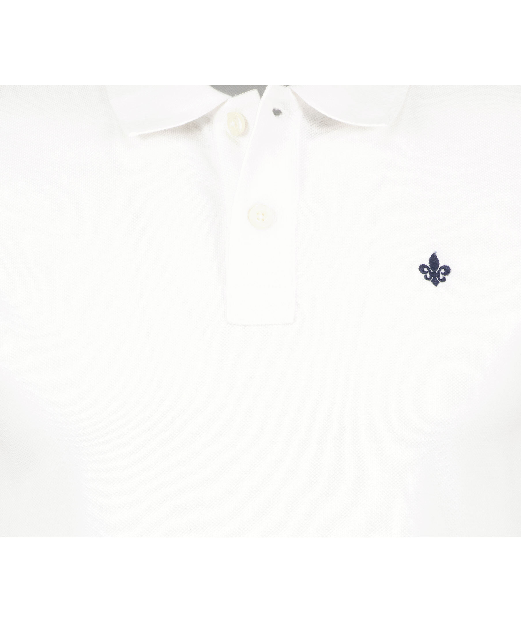 Vit pikétröja från Morris. Tillverkad i 100% bomull. Liten, broderad lilja på bröstet, normal passform. Små slitsar i sidorna och smala, ribbade ärmslut.