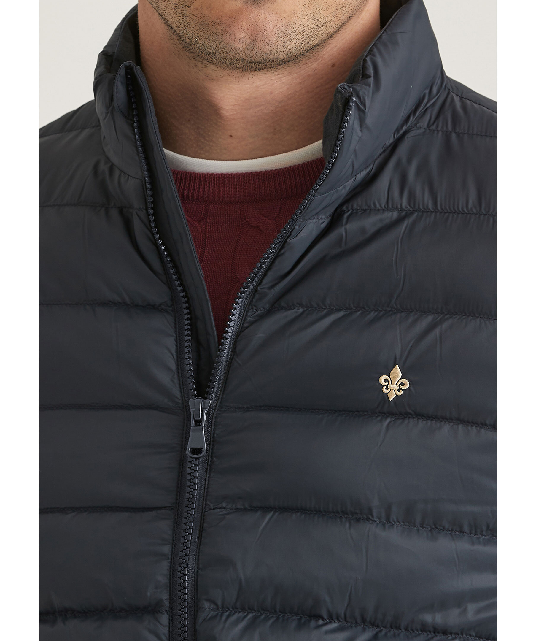 Mörkblå jacka från Morris. Jackan stängs med dragkedja framtill, två sidfickor med dragkedja samt broderad logotyp på bröstet. Tillverkad i polyamid med polyesterfyllning.