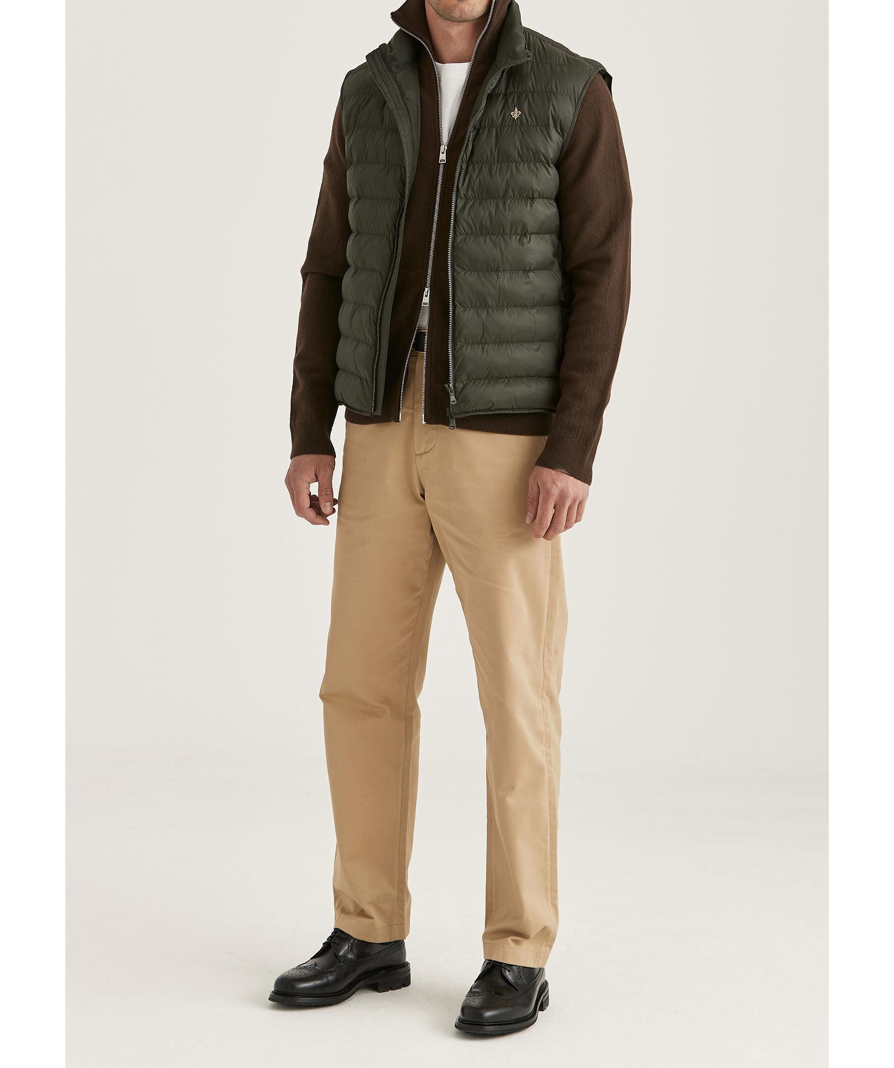 Olivgrön väst från Morris. Västen stängs med dragkedja och har två sidfickor med dragkedja samt broderad logotyp på bröstet. Tillverkad i polyamid med polyesterfyllning.