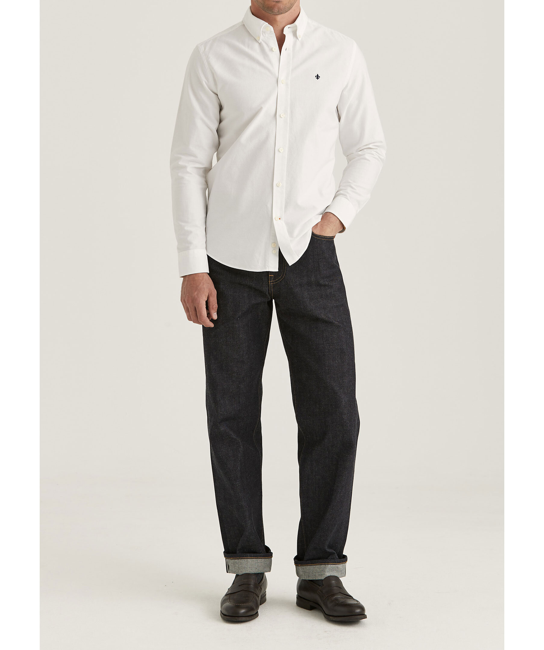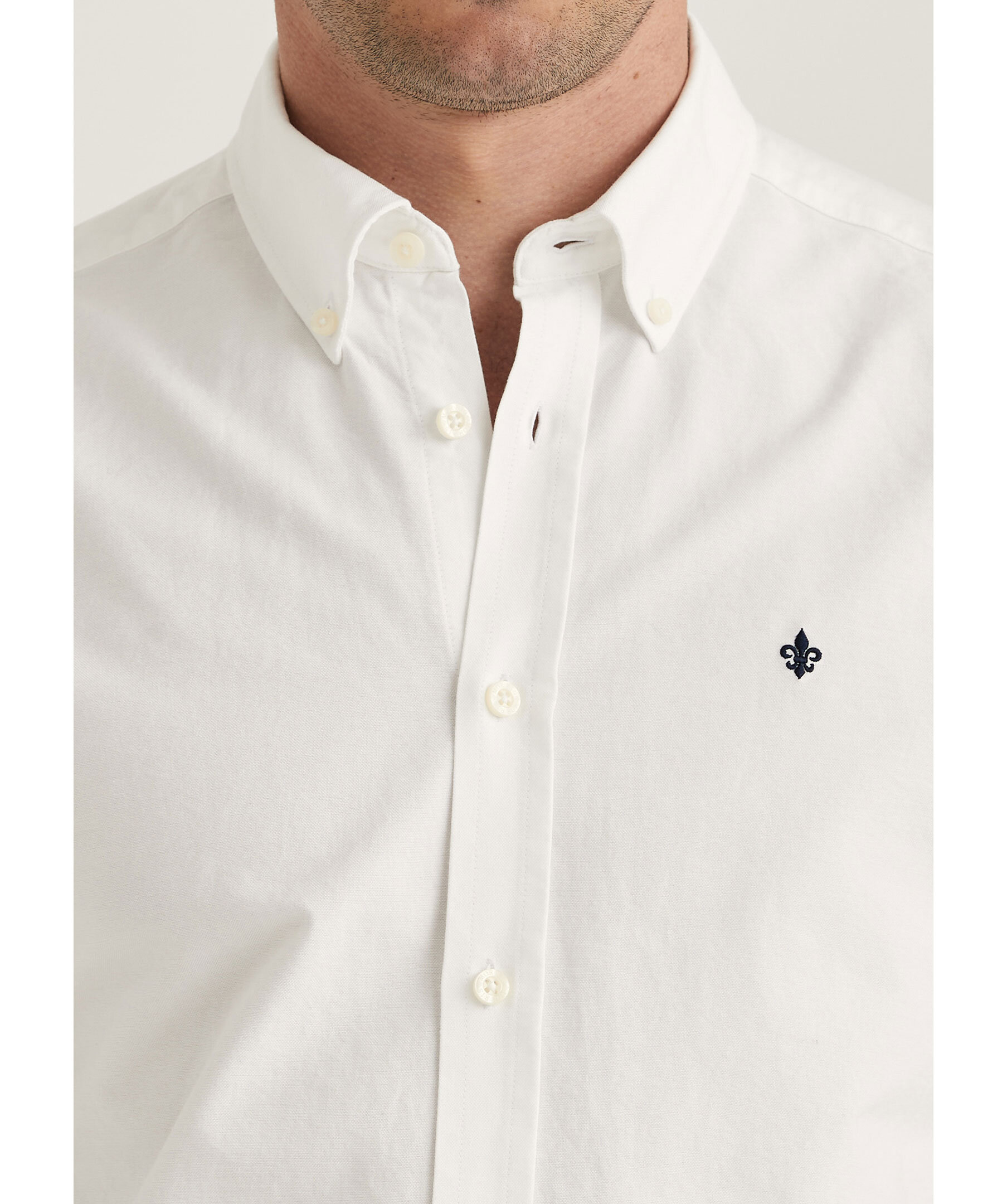 Vit skjorta från Morris. Skjortan har button down krage med medium spread, enkel svagt rundad manschett som regleras med 2 knappar samt broderad Morris lilja på bröstet. Tillverkad i 100% bomull.