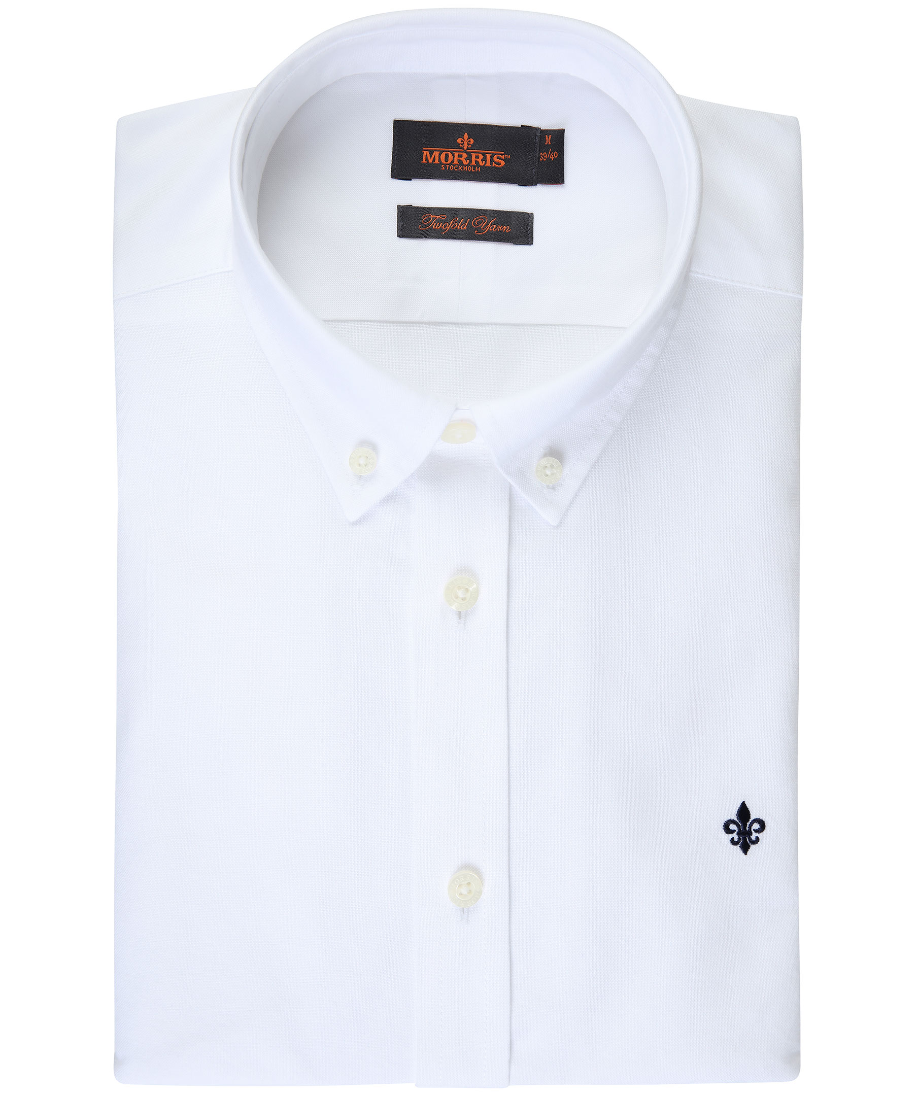 Vit skjorta från Morris i normal passform. Button down krage med medium spread. Enkel svagt rundad manschett som regleras med 2 knappar. Broderad Morris lilja på bröstet. Tillverkad i 100% bomull.