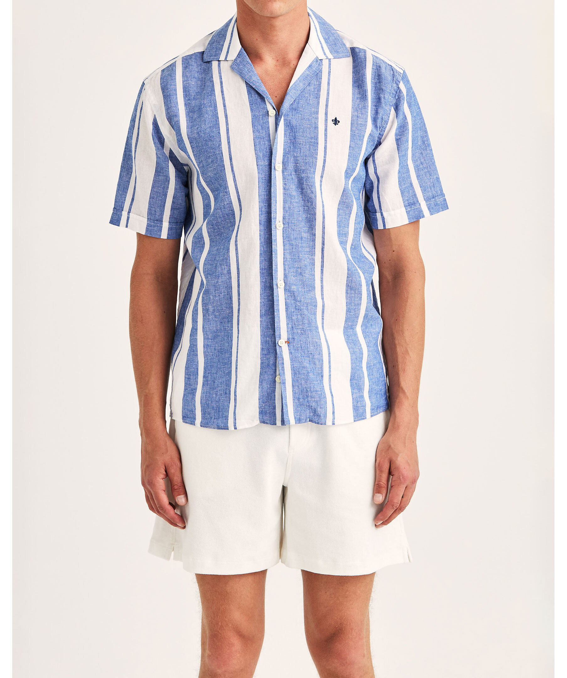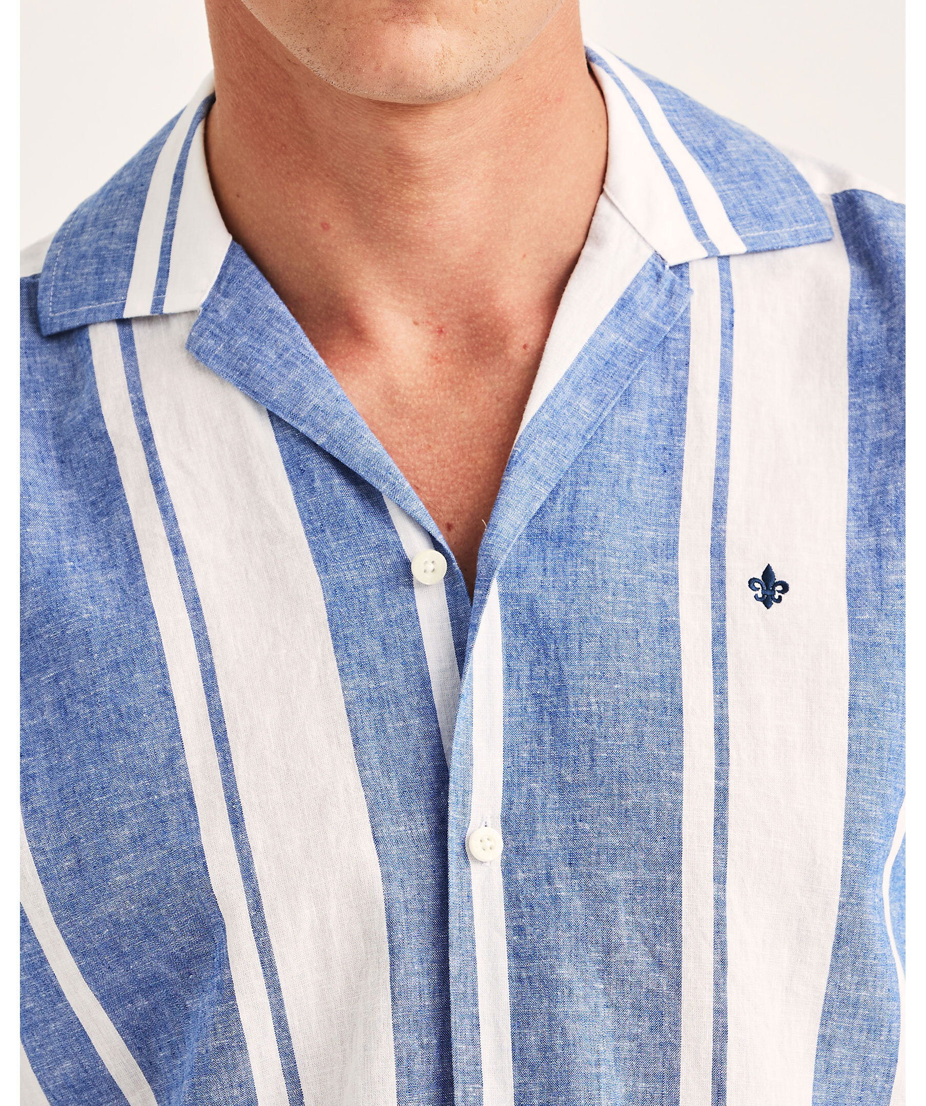 Resort Linen SS Shirt från morris fångar medelhavets anda, enkel, elegant och oändligt mångsidig. Tillverkad i en bomulls- och linneblandning som faller mjukt och andas perfekt i värmen.