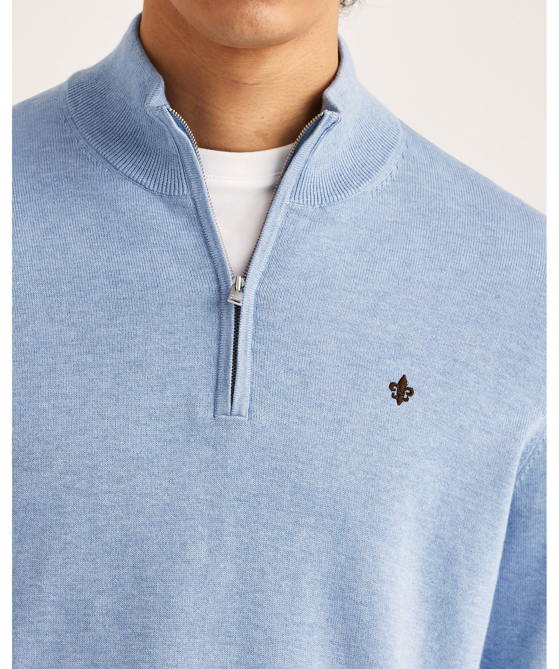 Riley Half Zip från Morris är tillverkad i mjuk bomull med en tung men följsam känsla. Halv zipen på tröjan ger mångsidighet och den broderade Morris-liljan tillför en elegant touch.