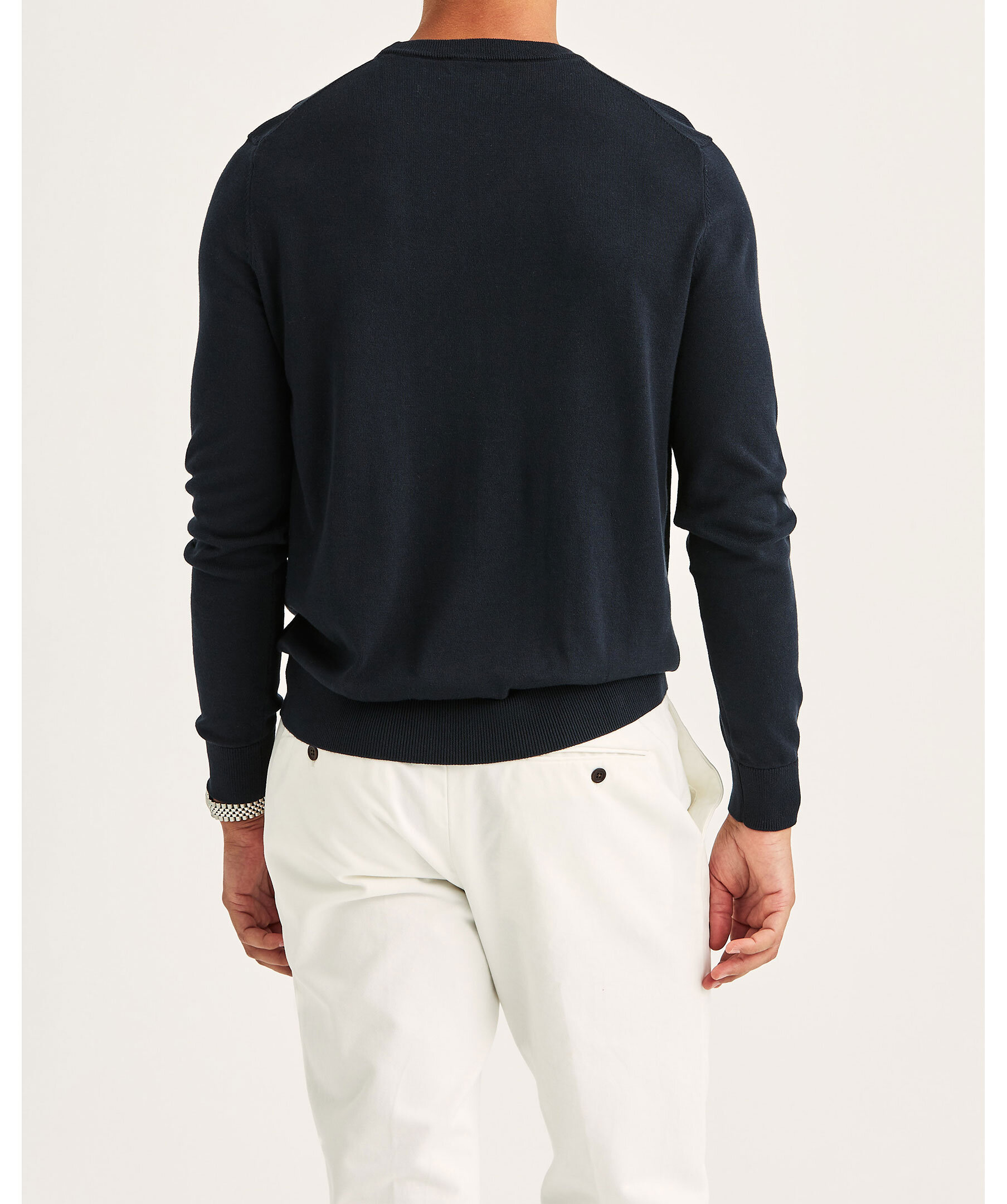 Riley Oneck från Morris är en stickad tröja i smal passform. Tröjan har rund hals och en broderad Morris signaturlilja på bröstet