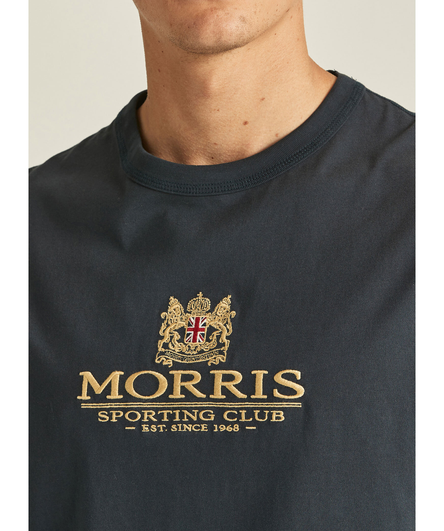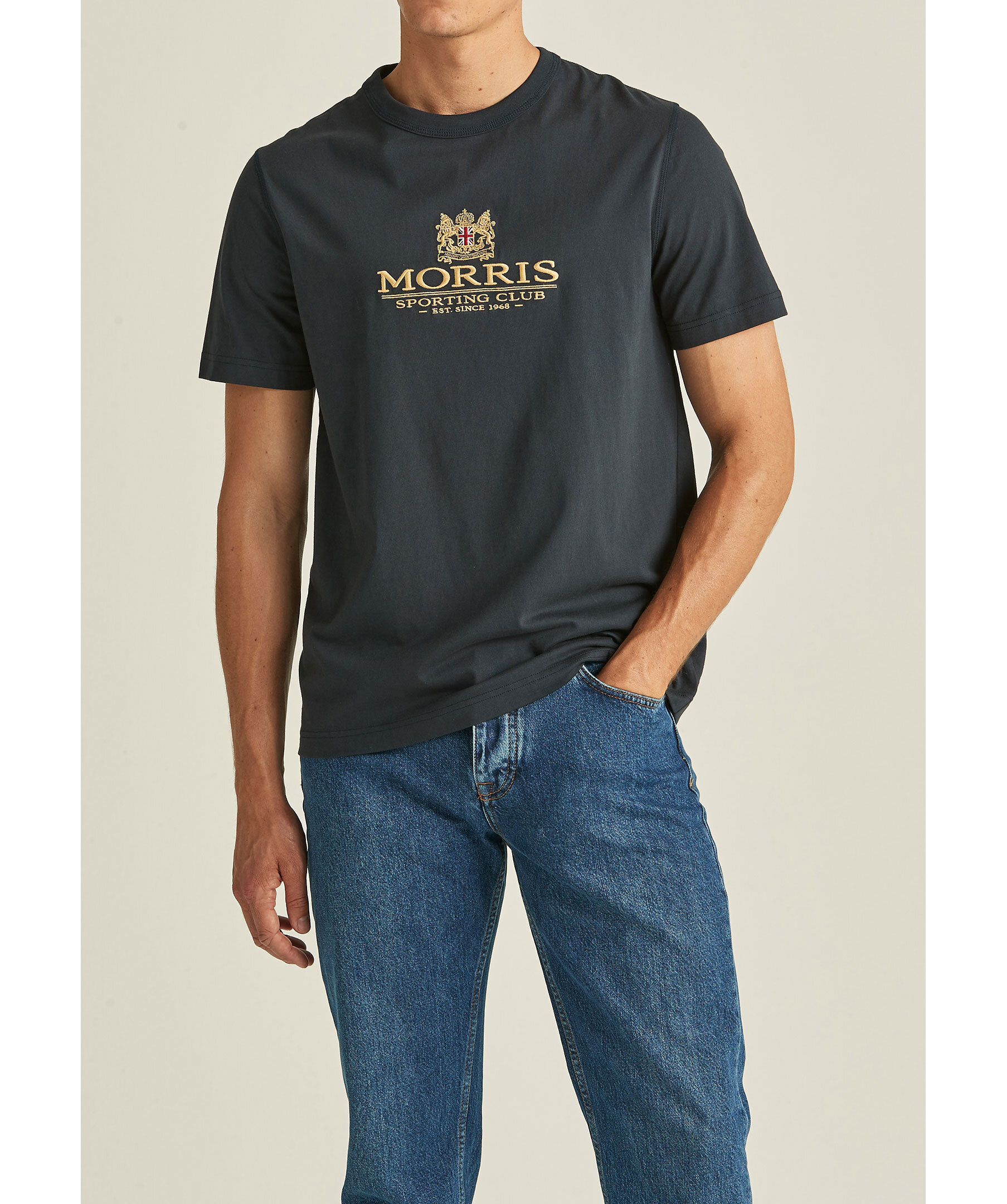 Svart T-shirt från Morris med rundad halsringning. Broderad logotyp över bröstet. Tillverkad i 100% bomull.