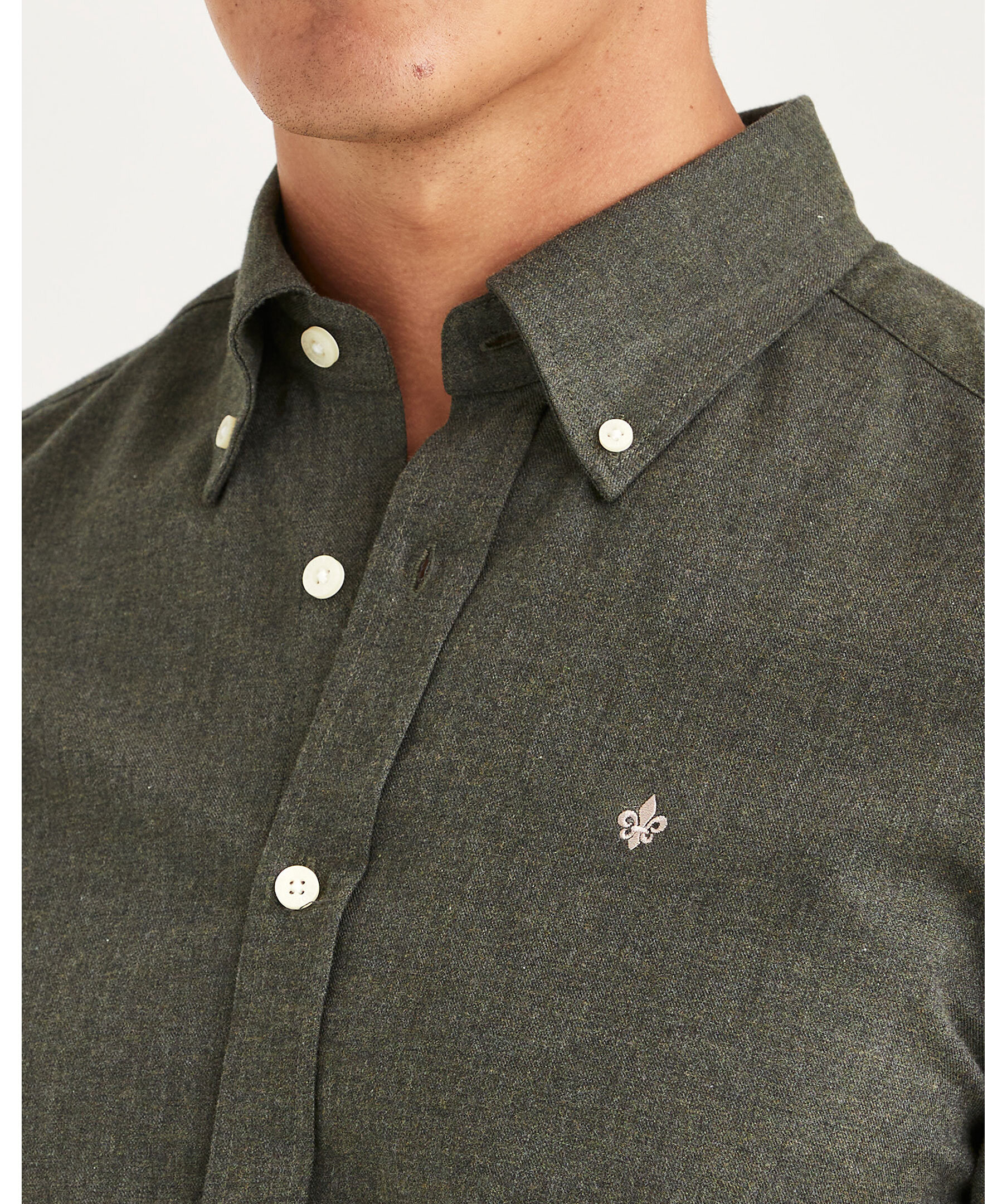 Grön flanellskjorta från Morris. Skjortan har en smal passform och är skräddarsydd för att sitta tajtare runt bröst, midja och bottenvidd för en modern silhuett. Gjord i 100% bomull och har en button down krage och Morris signaturlilja broderad på bröstet.