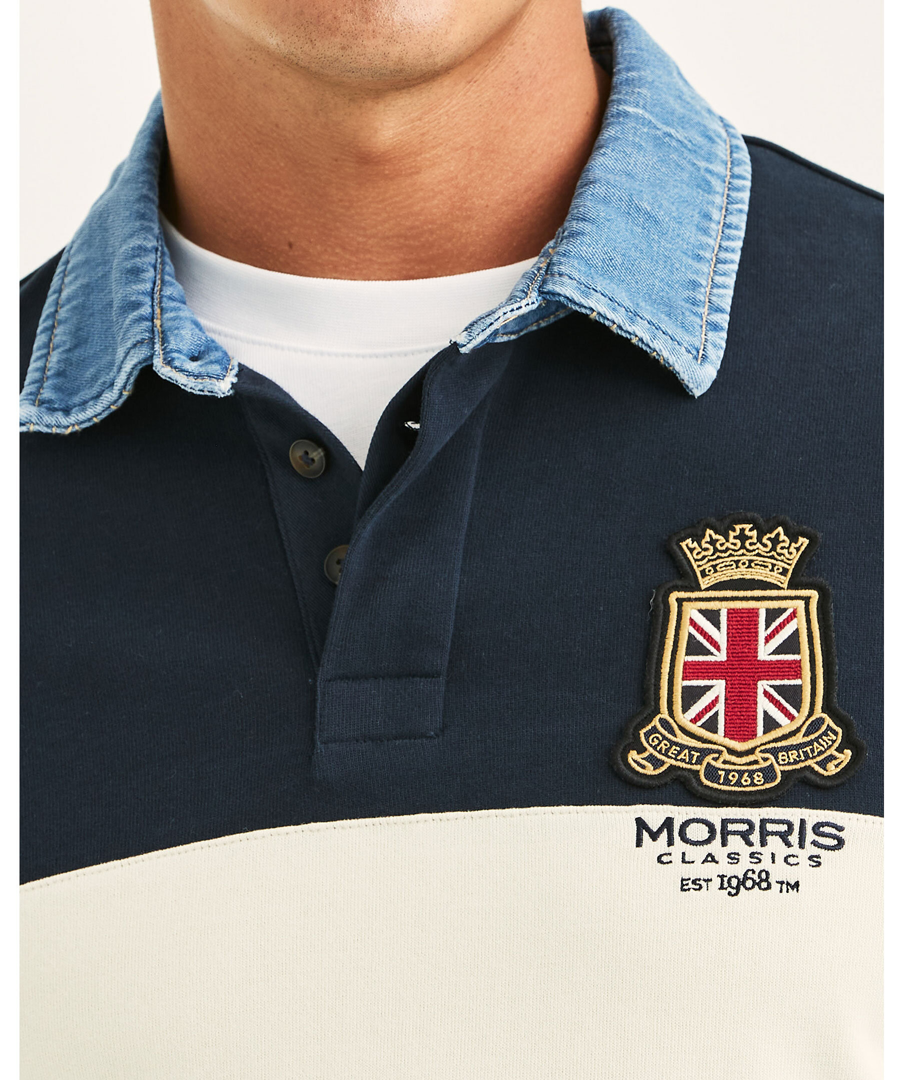 Weston Rugger från Morris är en modern tolkning av den klassiska rugbytröjan. Tillverkad i mjuk bomullsjersey.
