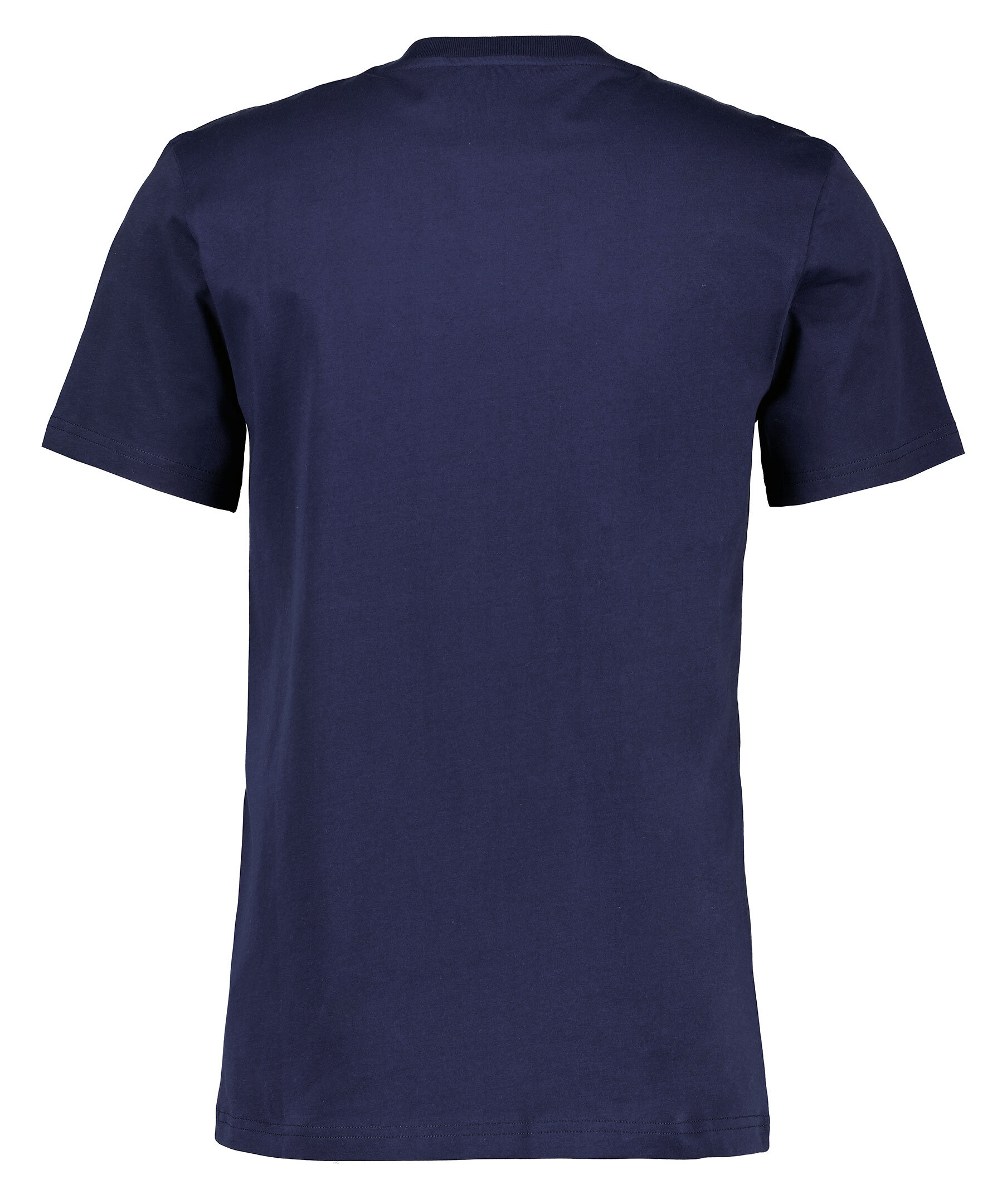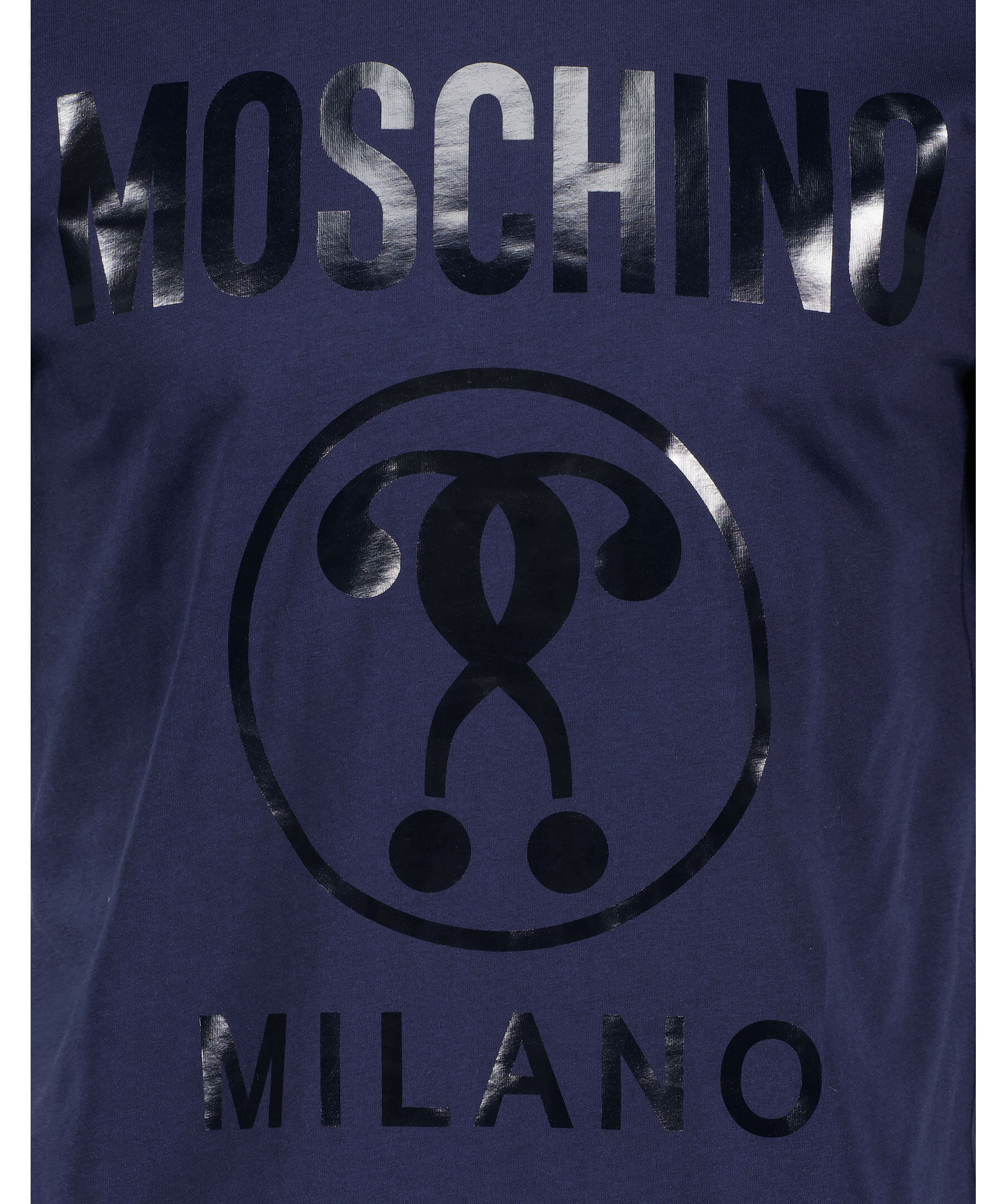Marinblå t-shirt från Moschino. Gjord i 100% bomull. Tröjan har ett svart glansigt tyck med logotyp på tröjans framsida.