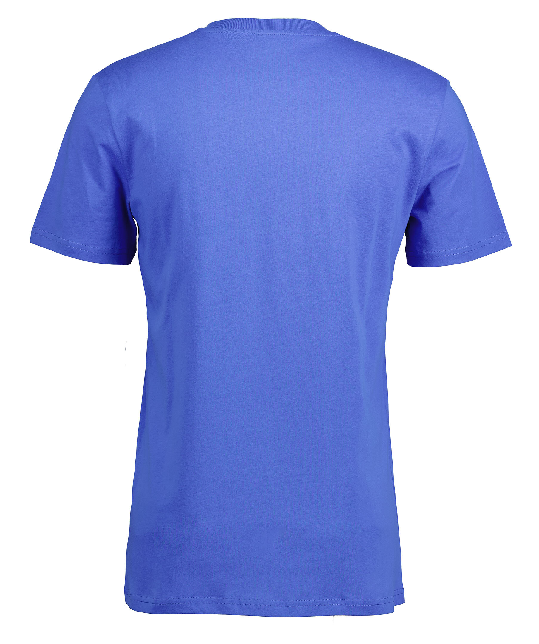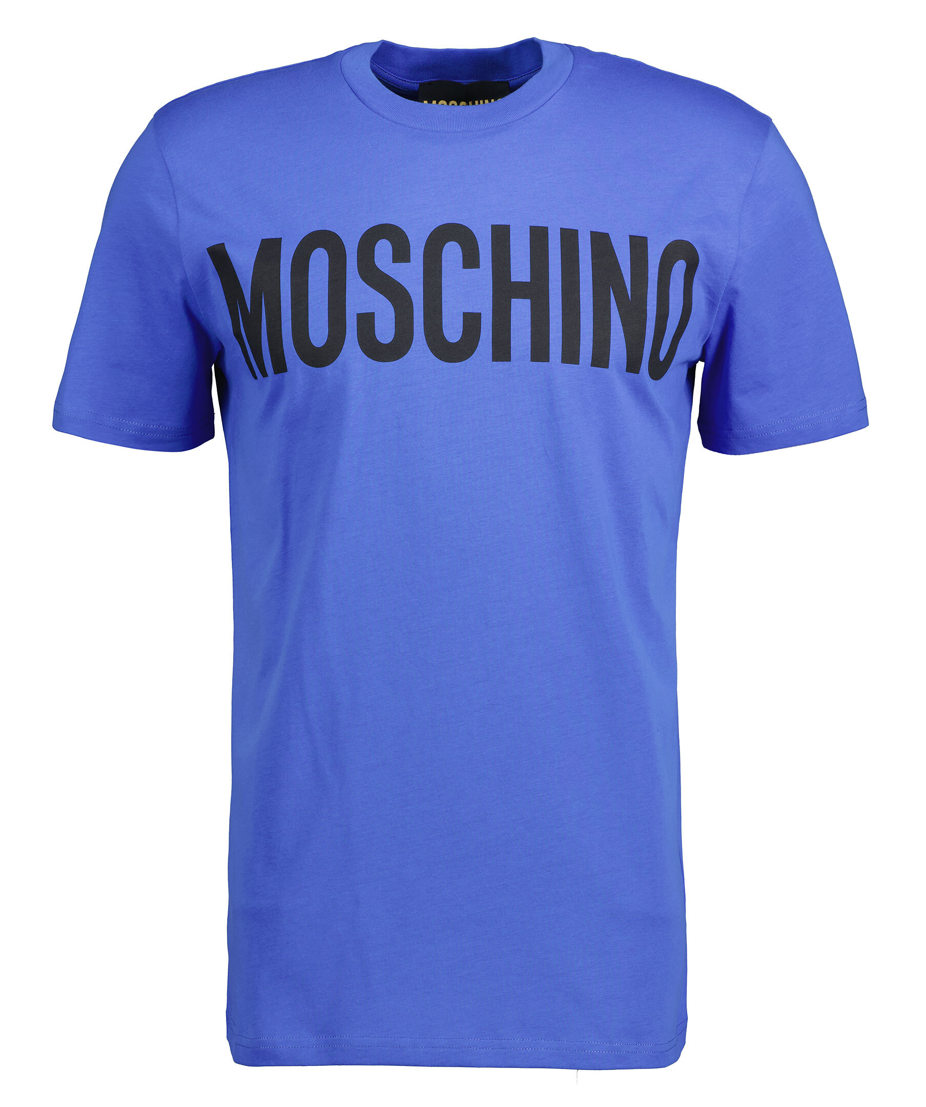 Blå t-shirt från Moschino. Gjord i 100% bomull. Tröjan har ett svart tyck med logga på bröstet. Ribbad mudd vid halsringningen.