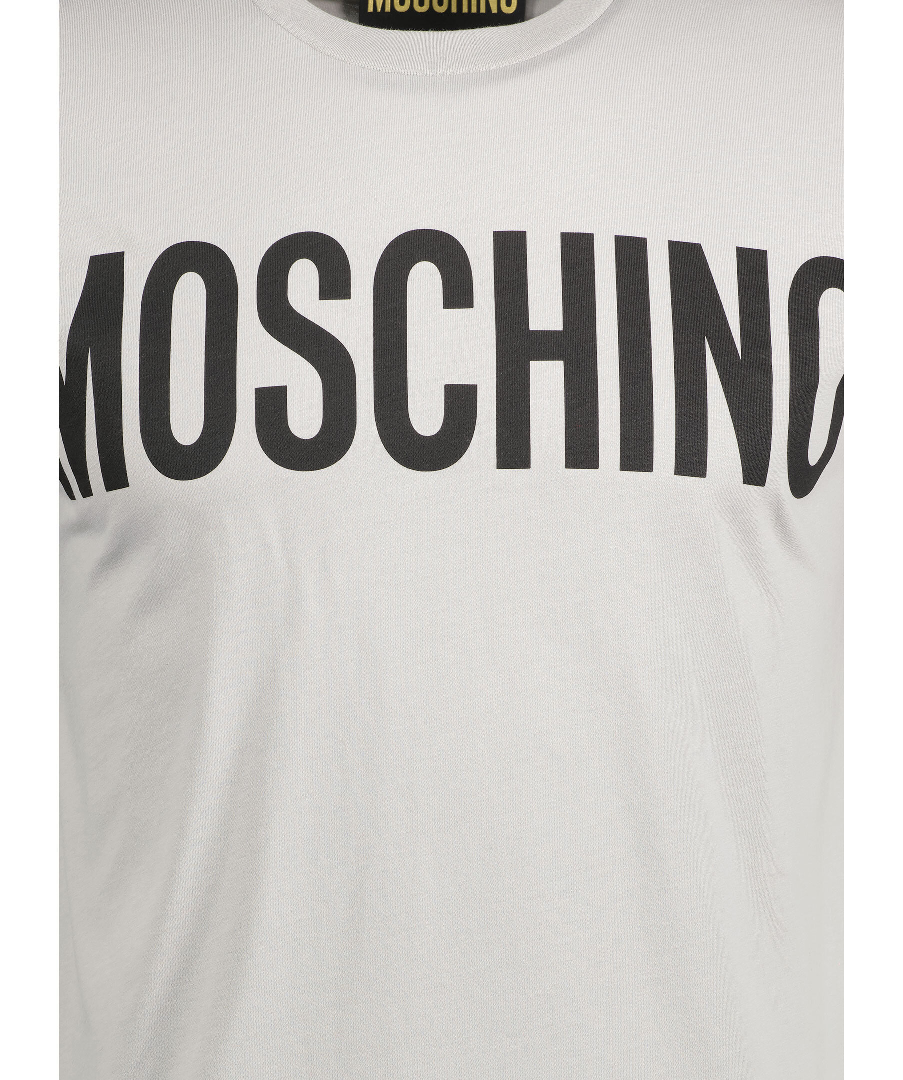 Grå t-shirt från Moschino. Gjord i 100% bomull. Tröjan har ett svart tyck med logga på bröstet. Ribbad mudd vid halsringningen.