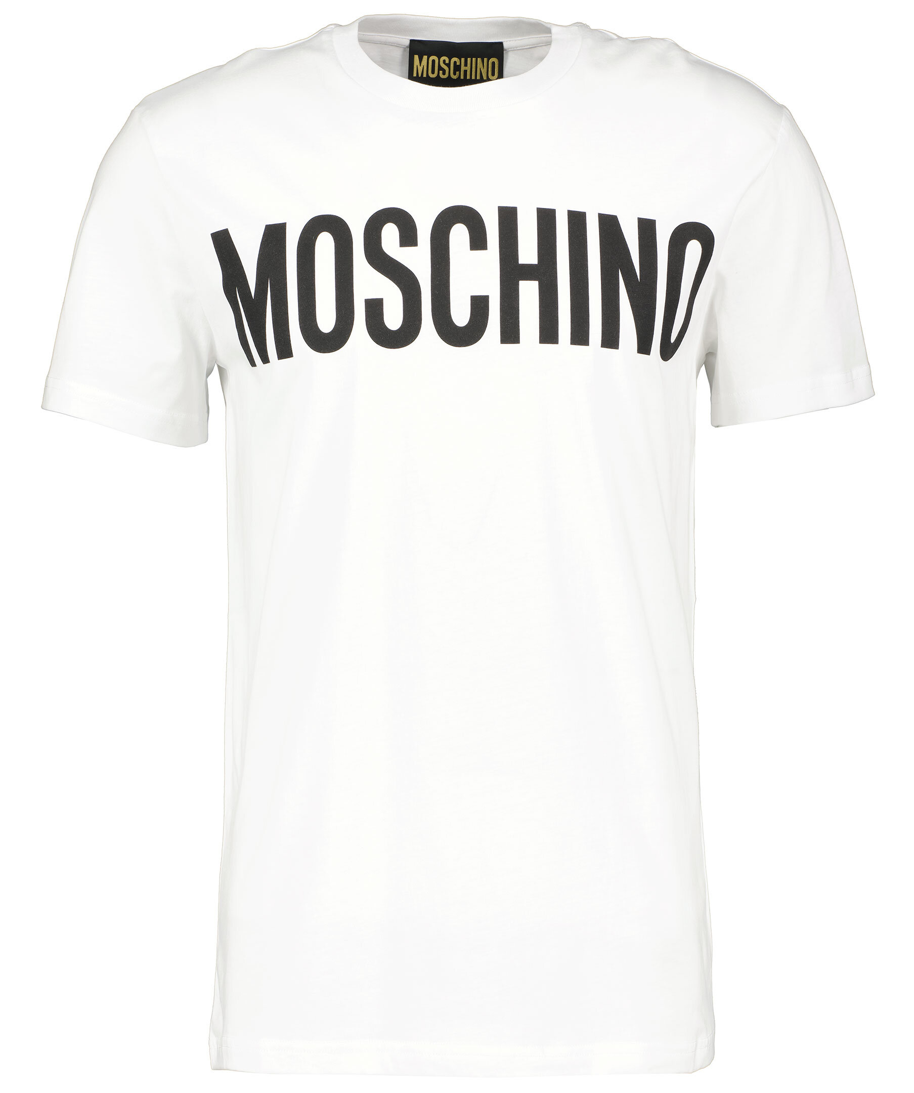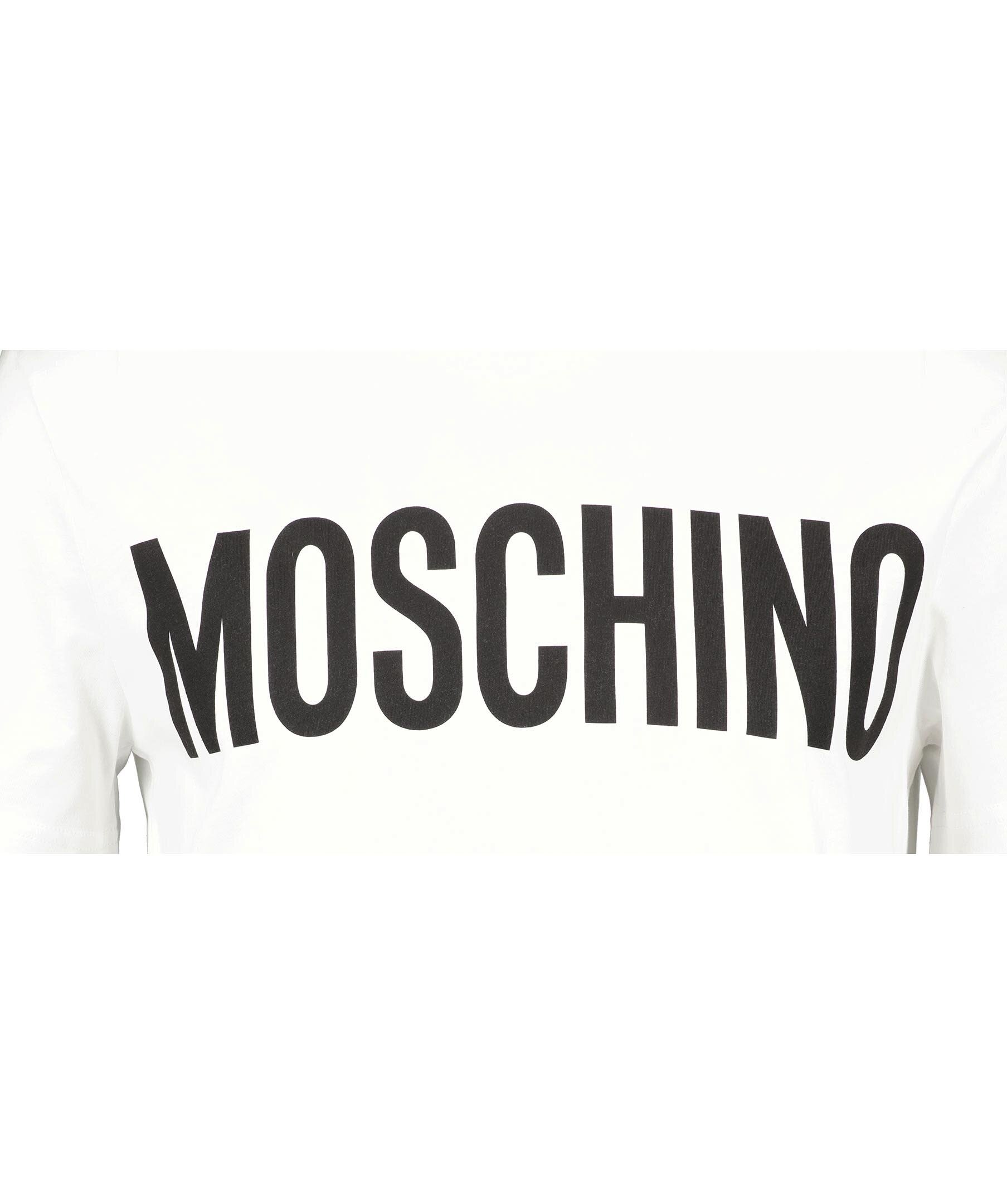 Vit t-shirt från Moschino. Gjord i 100% bomull. Tröjan har ett svart tyck med logga på bröstet. Ribbad mudd vid halsringningen.