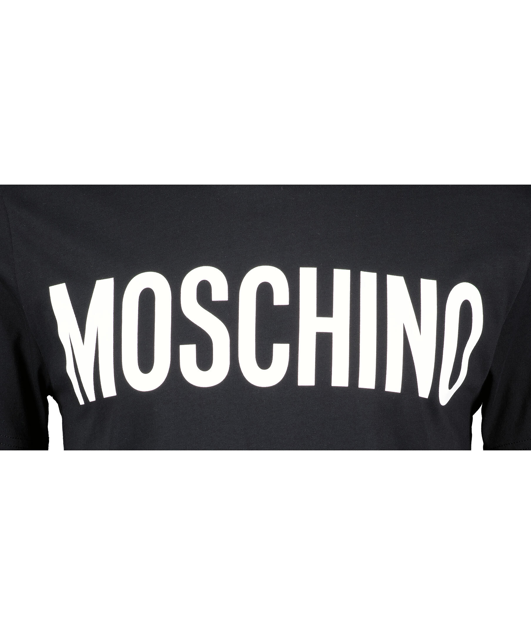 Svart t-shirt från Moschino. Gjord i 100% bomull. Tröjan har ett vitt tyck med logga på bröstet. Ribbad mudd vid halsringningen.
