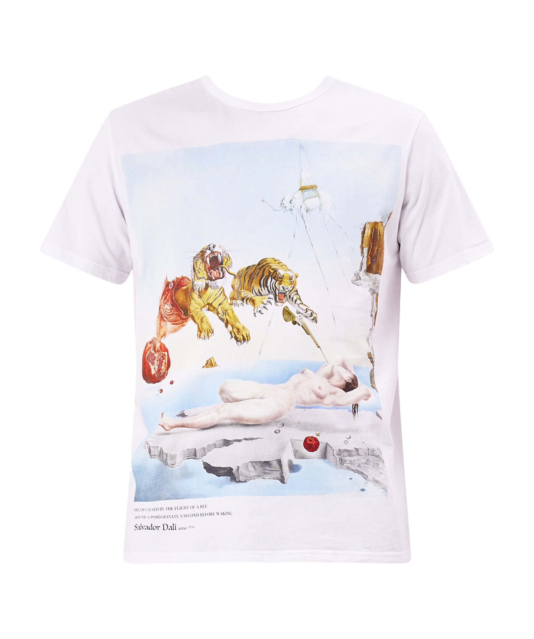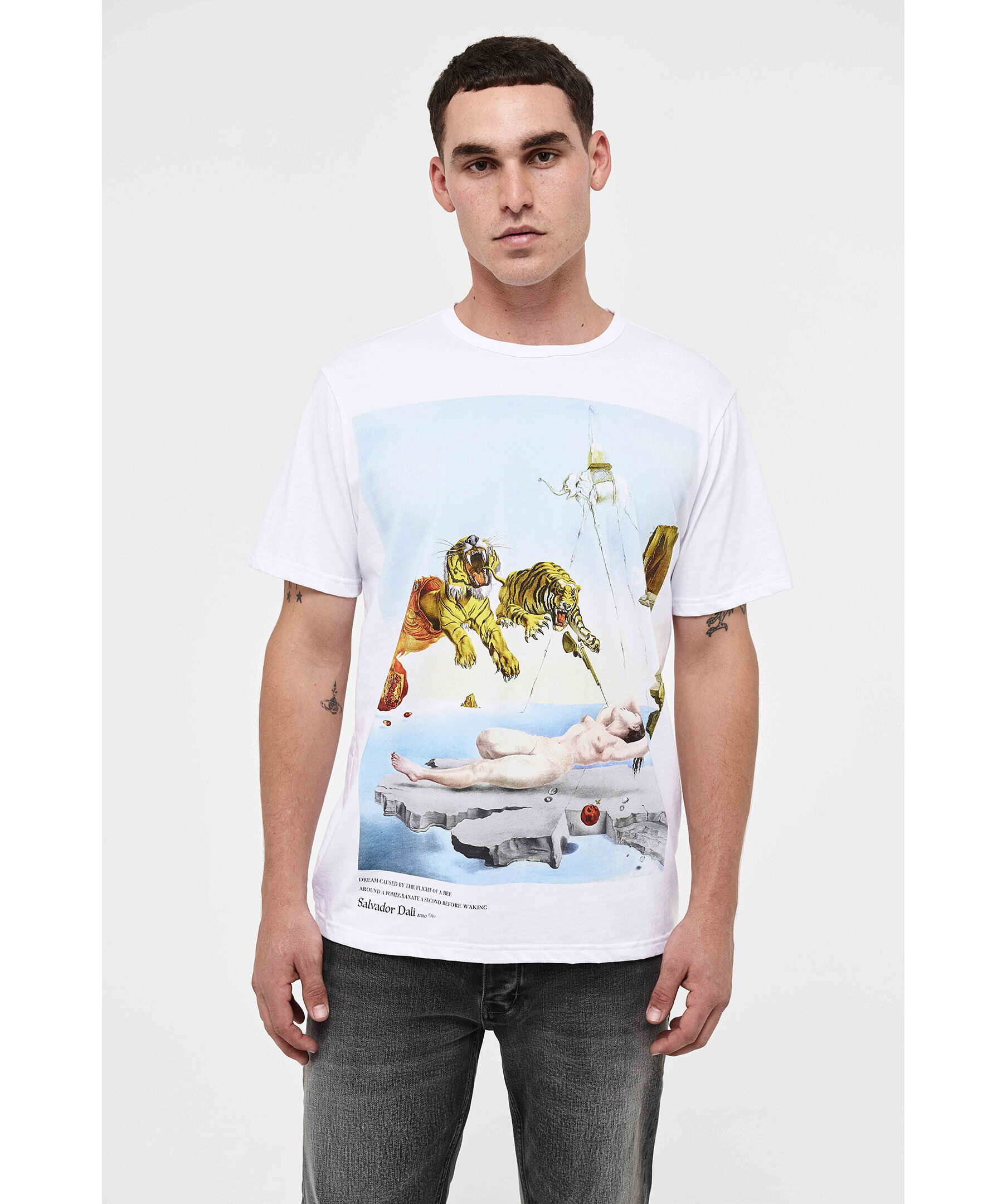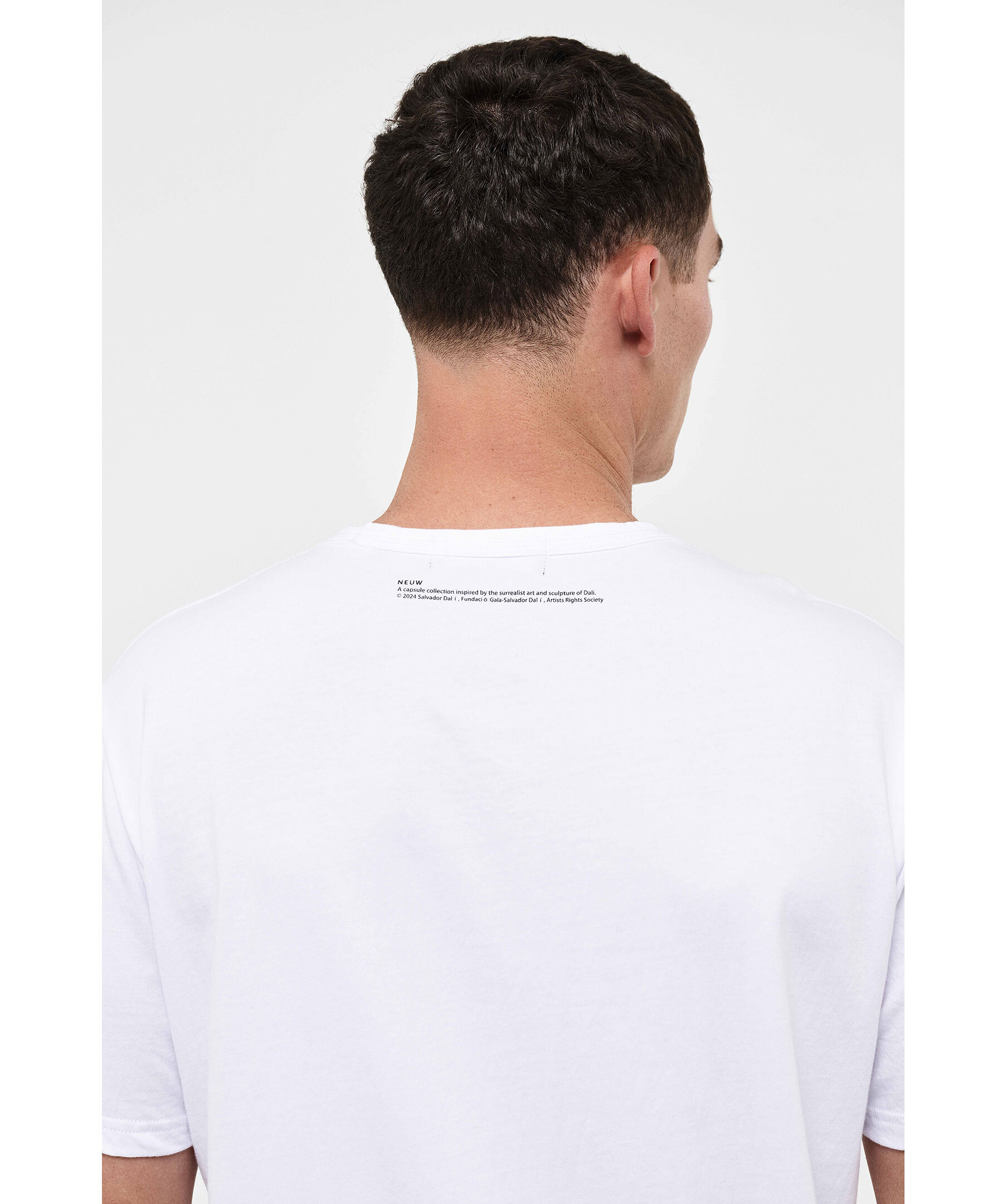 Vit t-shirt från Neuw's nya kollektion inspirerad av den spanska konstnären Salvador Dalí. T-shirten har rundad halsringning och tryck av "Dream Caused by the Flight of a Bee around a Pomegranate a Second before Waking". Tillverkad i ekologisk bomull.