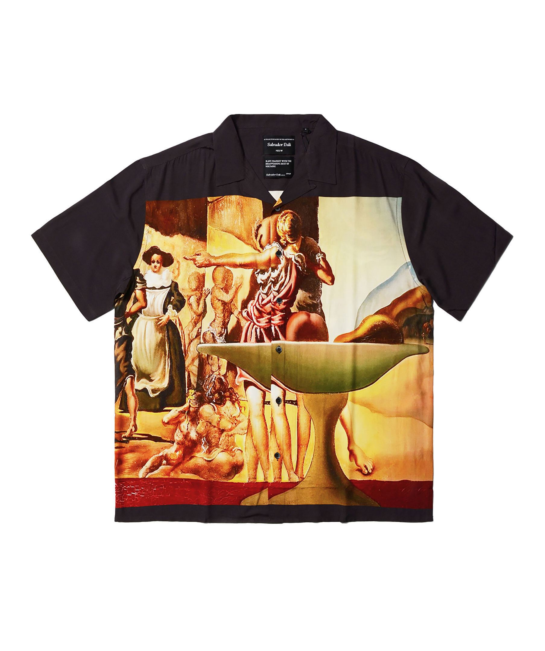 Mönstrad, kortärmad skjorta från Neuw's nya kollektion inspirerad av den spanska konstnären Salvador Dalí. Skjortan stängs med knappar framtill och har tryck av "Slave Market with the Disappearing Bust of Voltaire". Tillverkad i viskos. ■ OBS! Modellbild visar passform