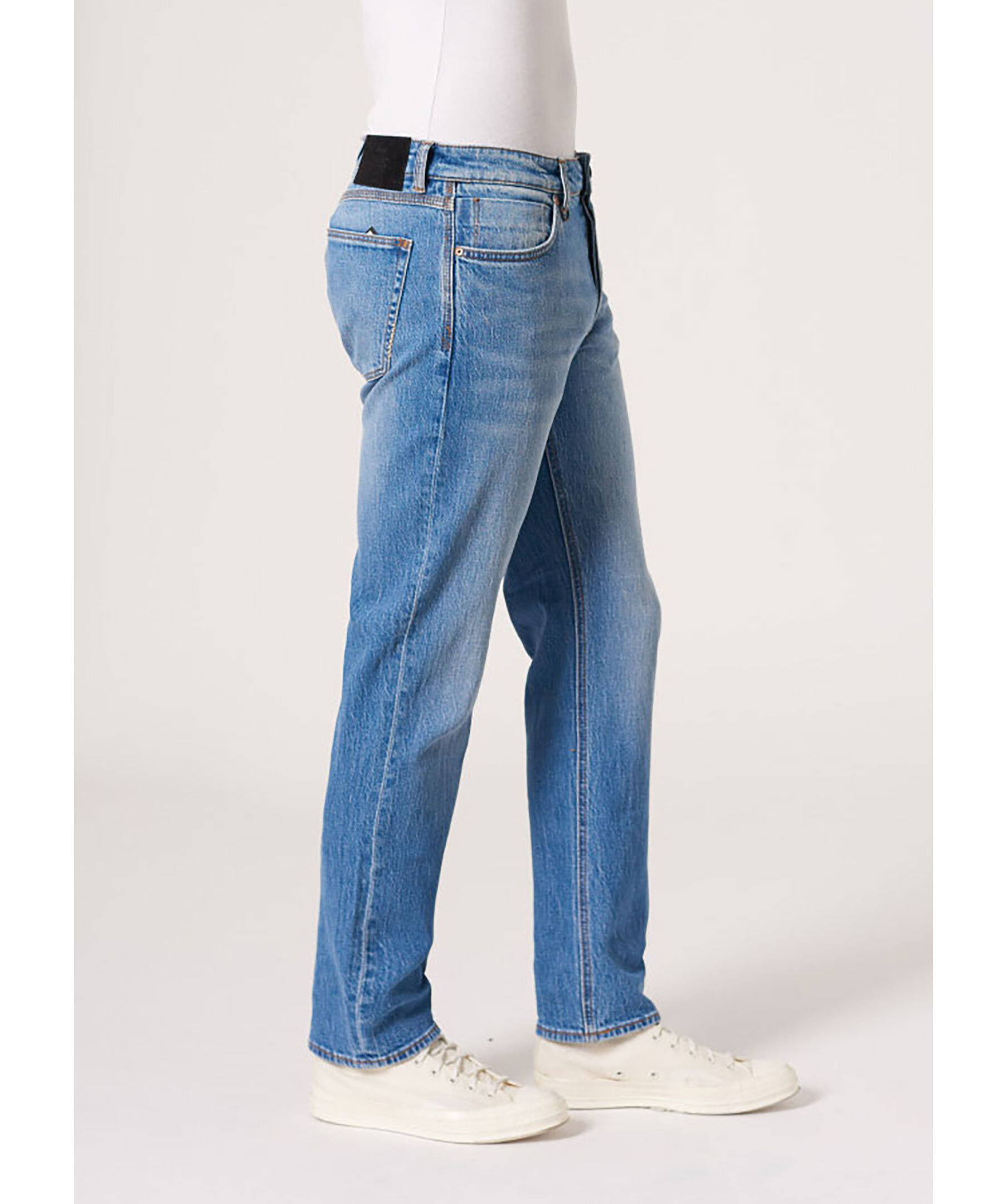 Blåa jeans från Neuw. Modern siluett med raka ben med lätt avsmalning. Byxorna har fem fickor samt deras signaturring framtill. Tillverkade i bomull med lite stretch.