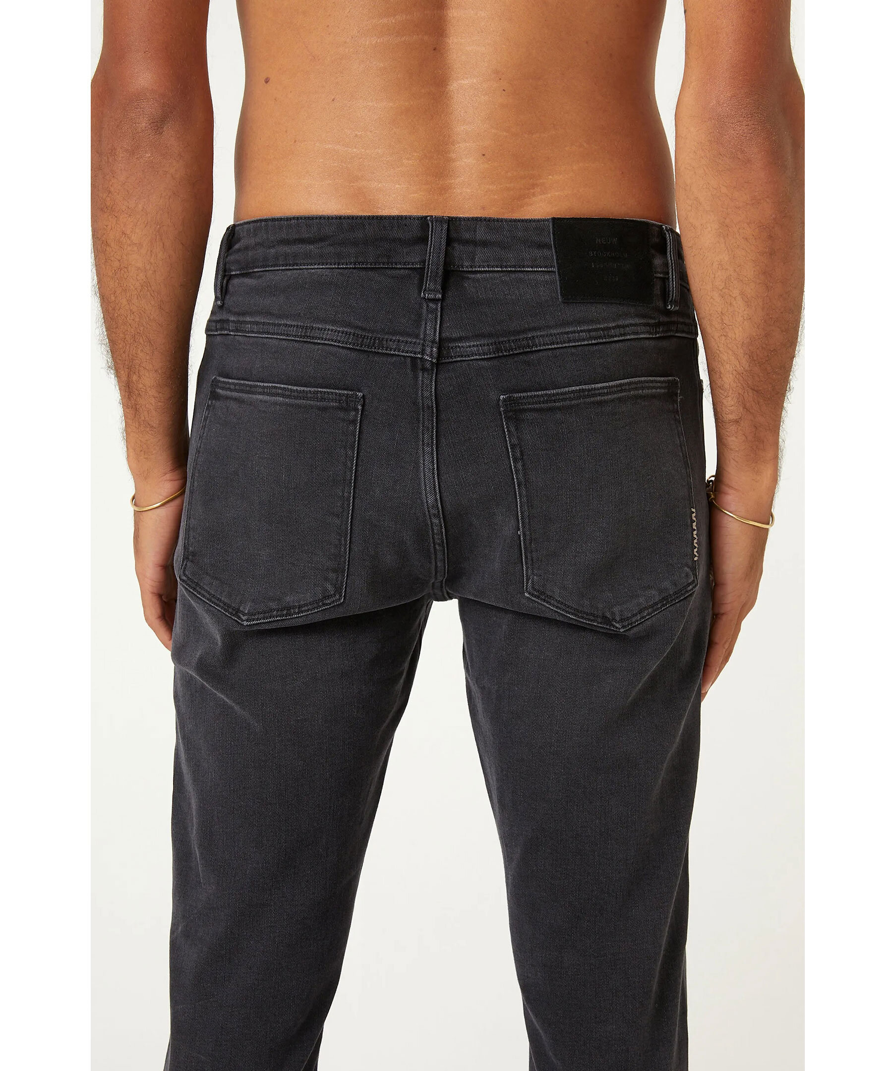 Svarta jeans med en urtvättad look från Neuw. Normalhög midja med avsmalnande bensiluett. Kommer att mjukna och skulptera efter din kropp för ökad komfort. Slimmad passform. Tillverkade i en bomullsblandning. Byxorna har fem fickor och stängs med dragkedja och knapp framtill.