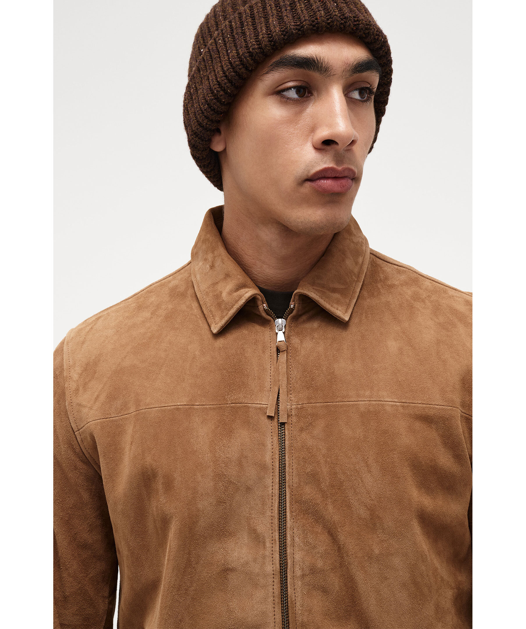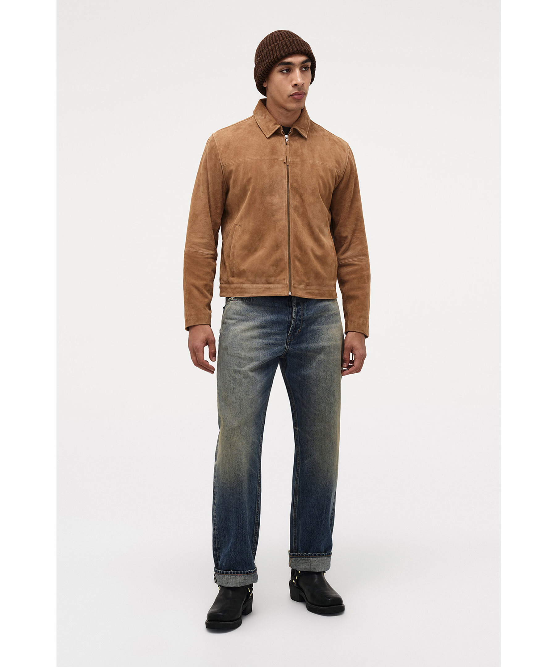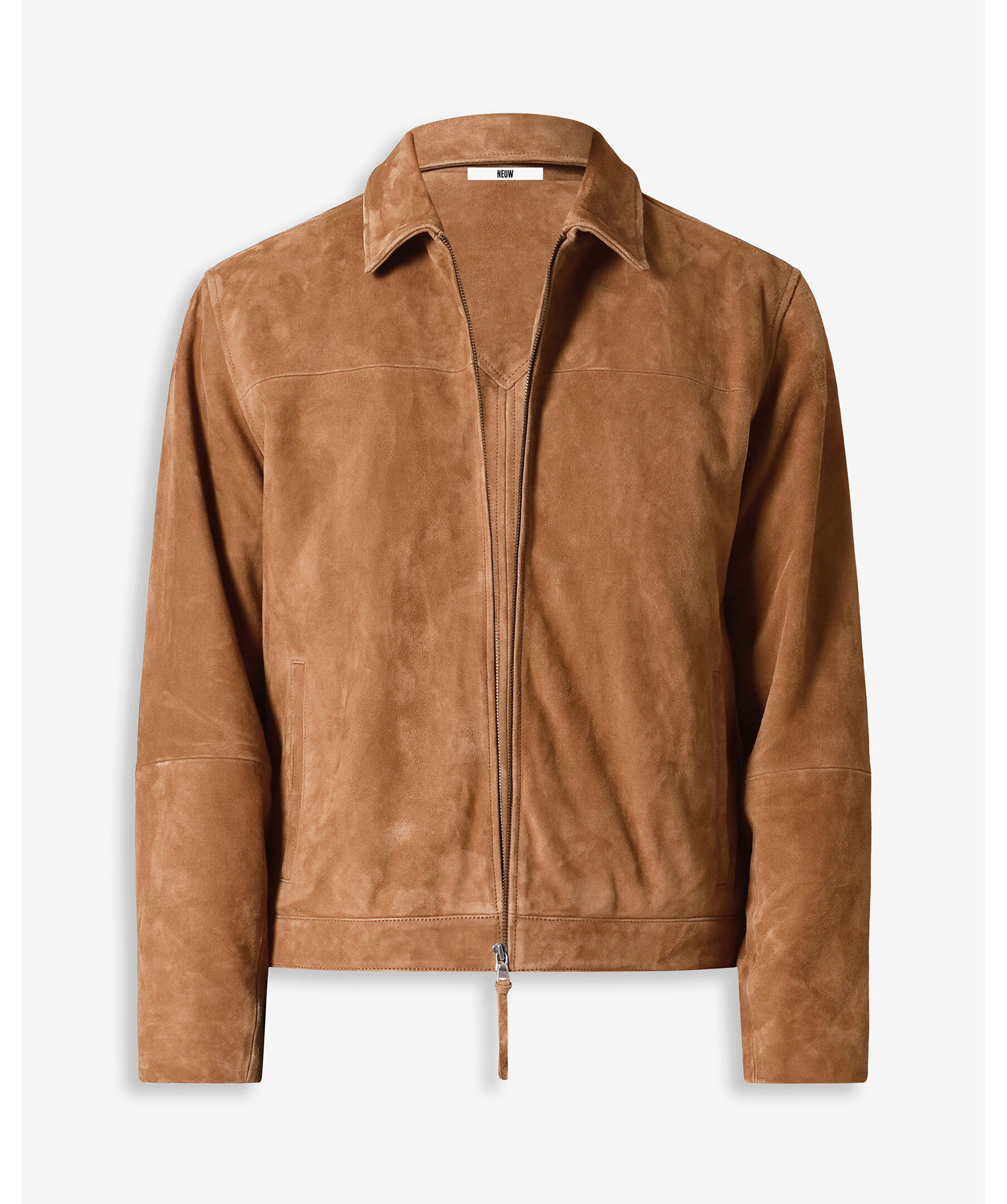 Mockajacka i western inspiration från Neuw. Gjord i ett mjukt mockaläder med whiskery tan‑ton och metallbeslag, designad med en avslappnad men samtidigt strukturerad passform. Den är helfodrad för komfort och kan stylas med mörk denim och vit t‑shirt för en avslappnad look eller med skräddade byxor för en mer polerad westernprägel.