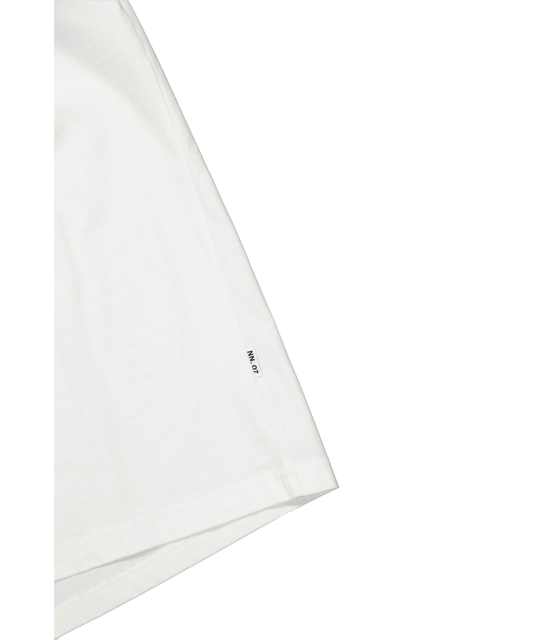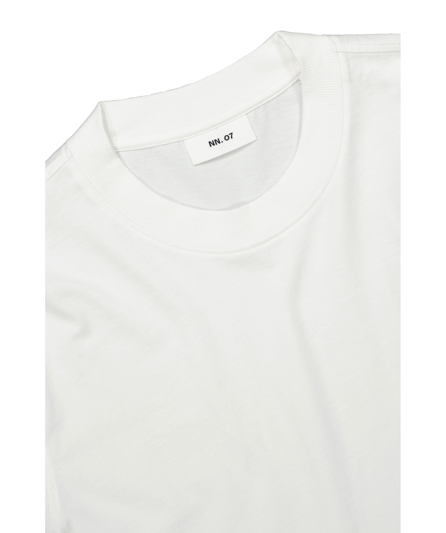 Vit t-shirt från NN07. Tillverkad i en fin Pima Cotton Jersey. Komplett med tvillingnålstygn i hela och en ribbdetalj längs halsen.