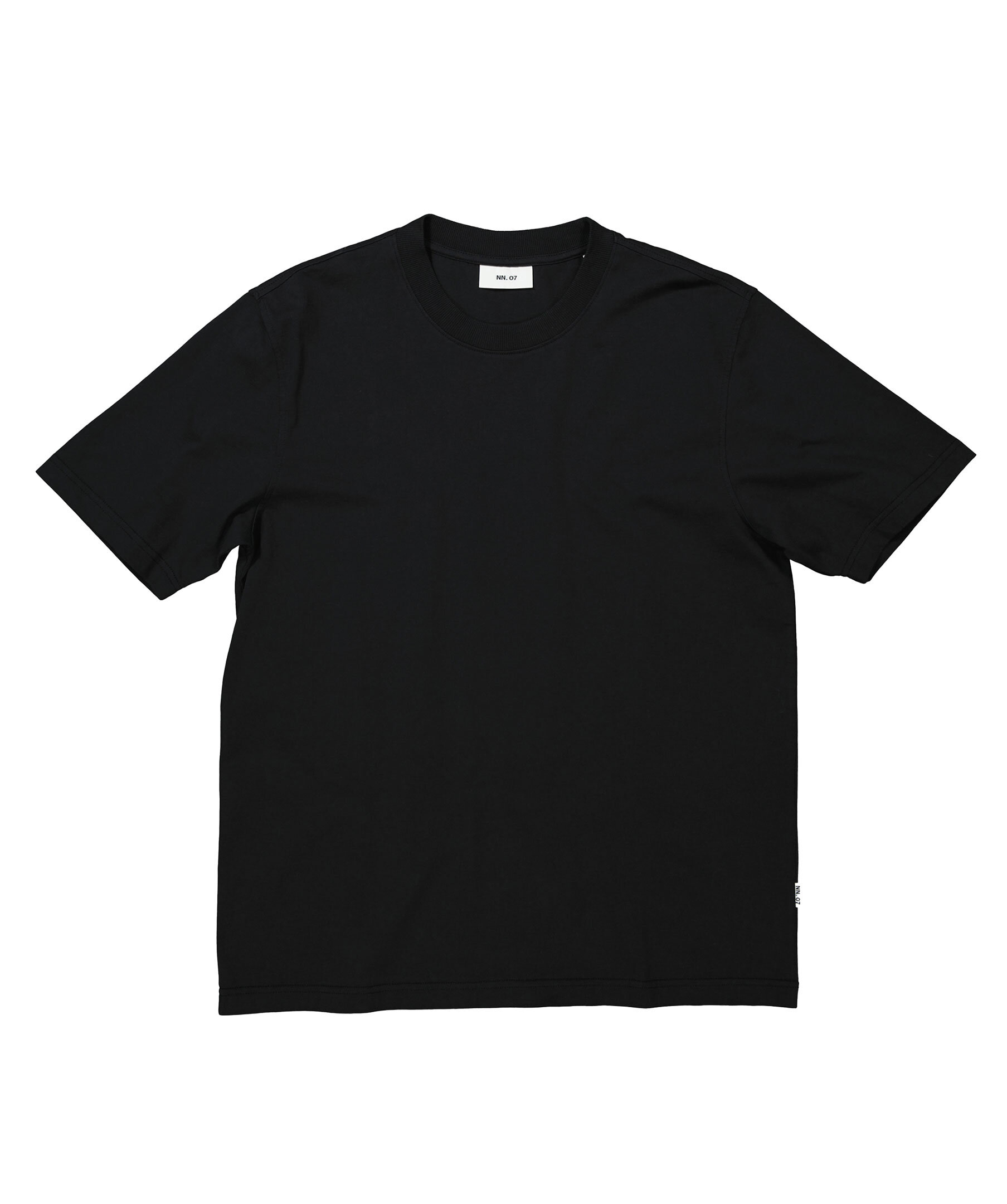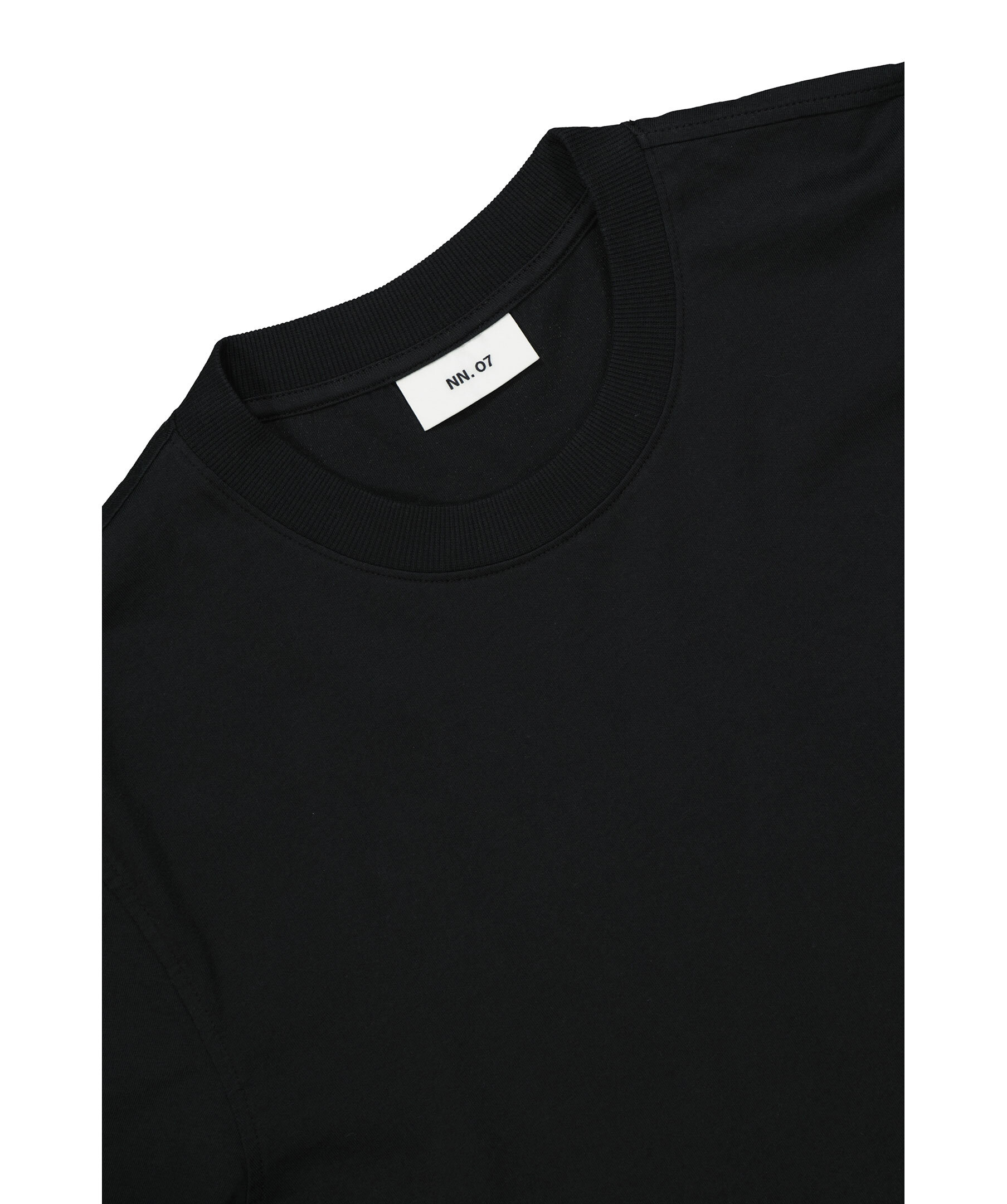 Svart t-shirt från NN07. Tillverkad i en fin Pima Cotton Jersey. Komplett med tvillingnålstygn i hela och en ribbdetalj längs halsen.