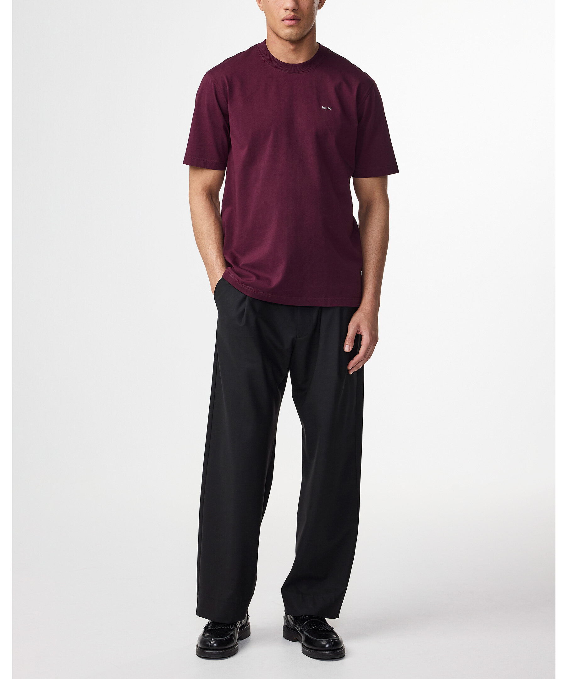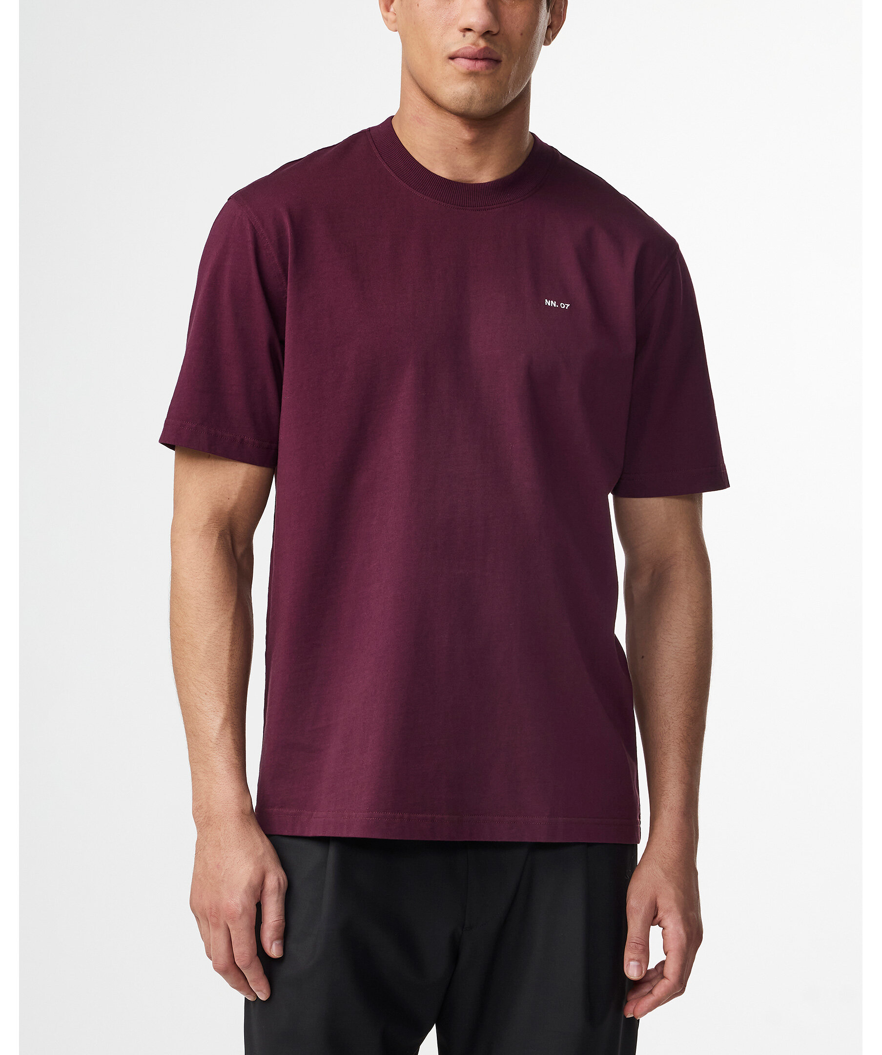 Vinröd t-shirt från NN07. Detaljer med dubbla nålsömmar och en snygg ribbning längs halsringningen samt en liten, broderad logotyp på bröstet. Tillverkad i en fin Pima Cotton Jersey.