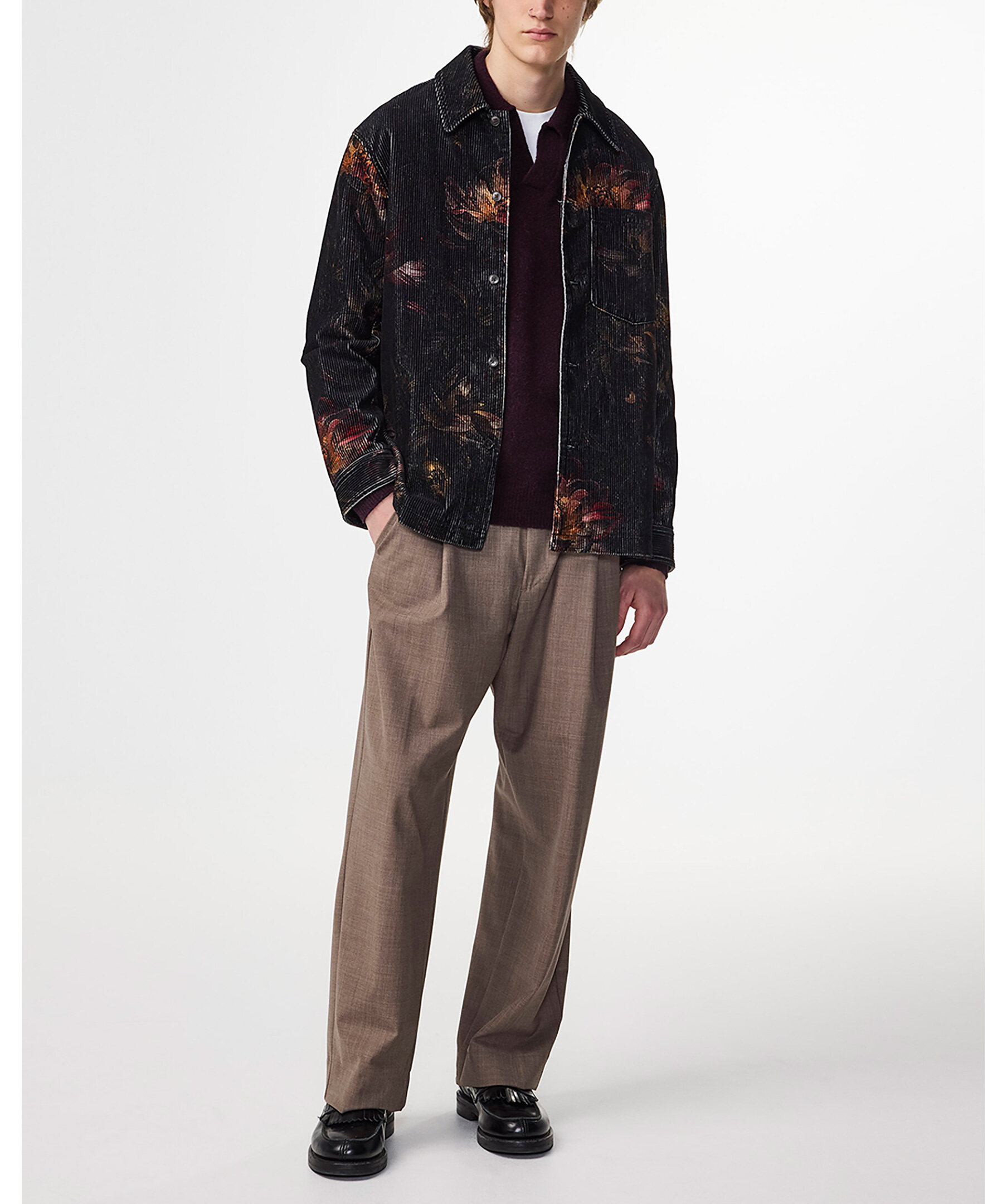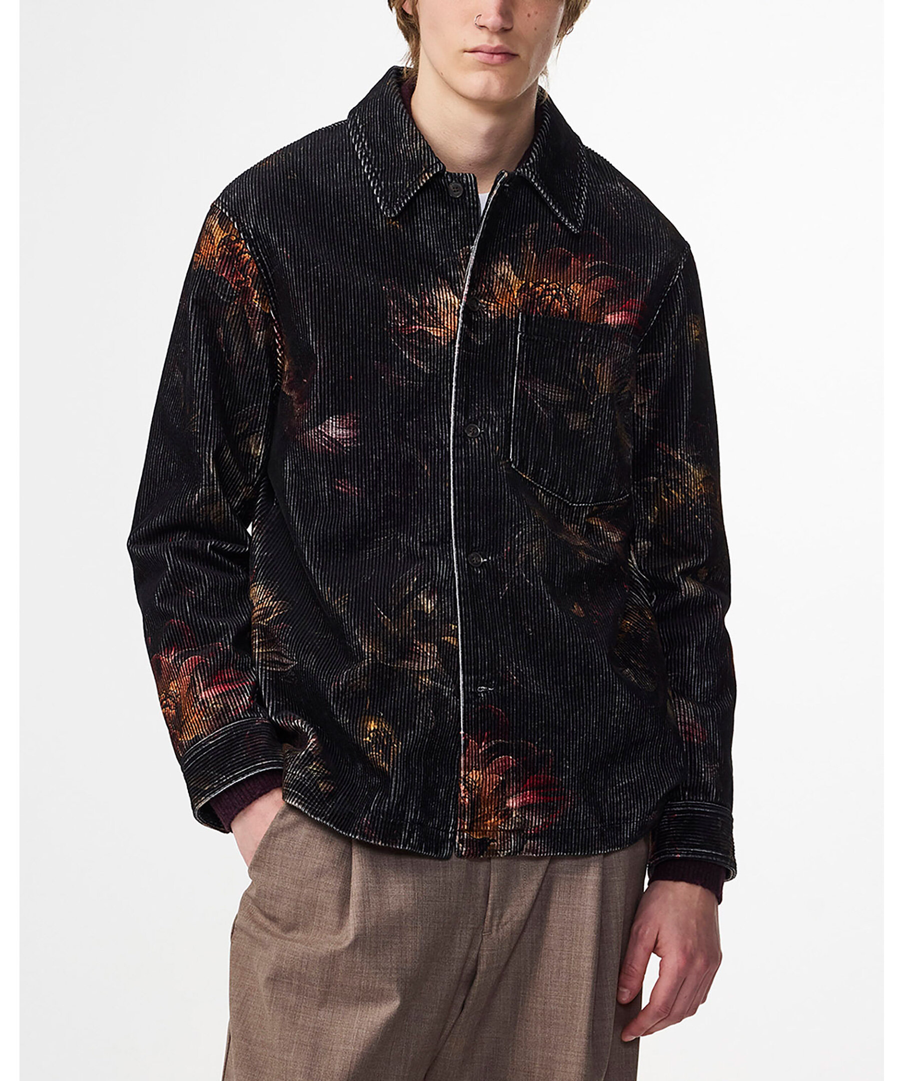 Helfodrad överskjorta tillverkad av tryckt ekologisk bomullsmanchester med extra stretch för komfort. Designad med knappar i jordhornsmönster och en bröstficka.