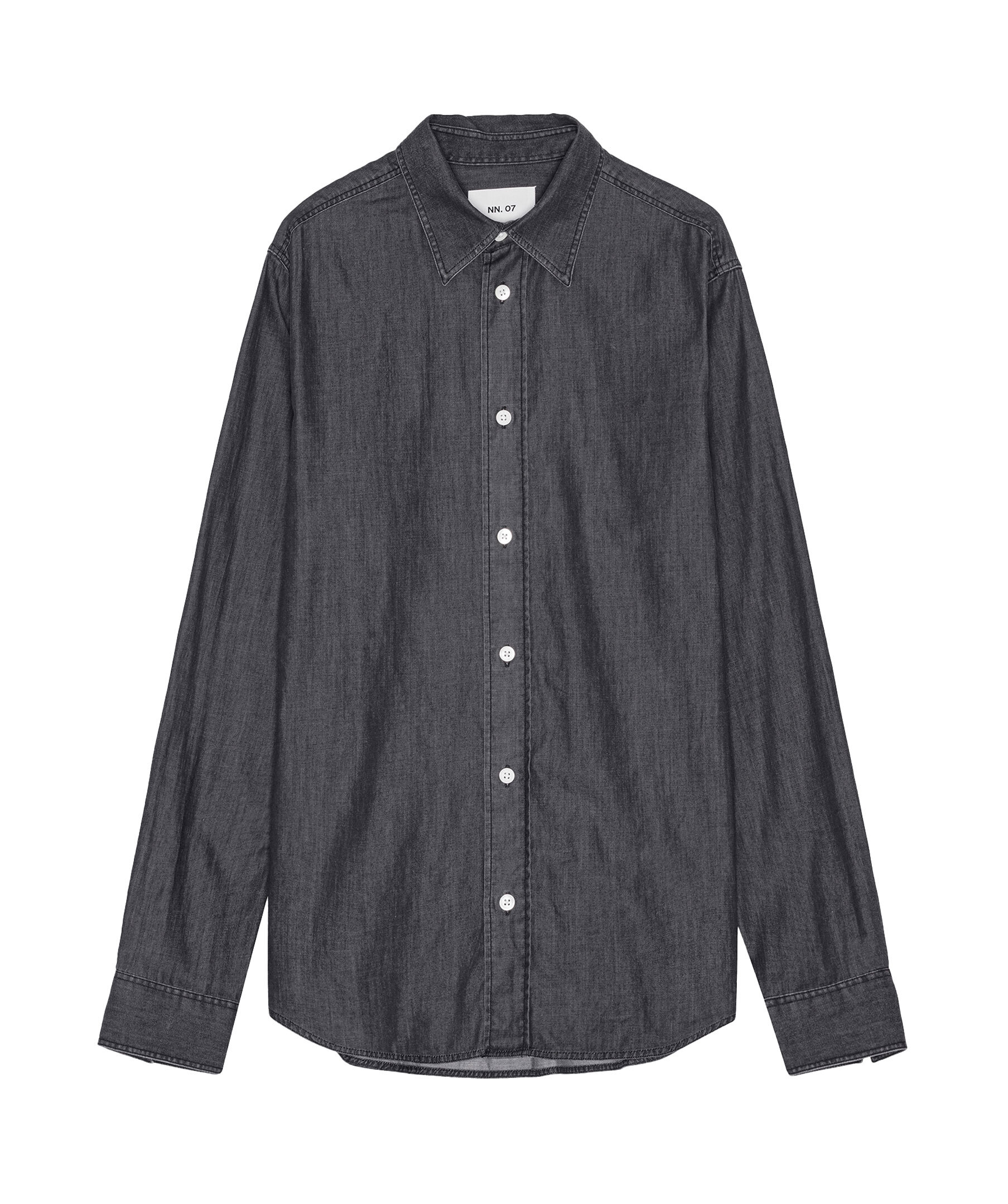 Grå skjorta från NN 07. Ledig jeansskjorta med pärlemoknappar, och är tillverkad av 100% ekologiskt bomull.