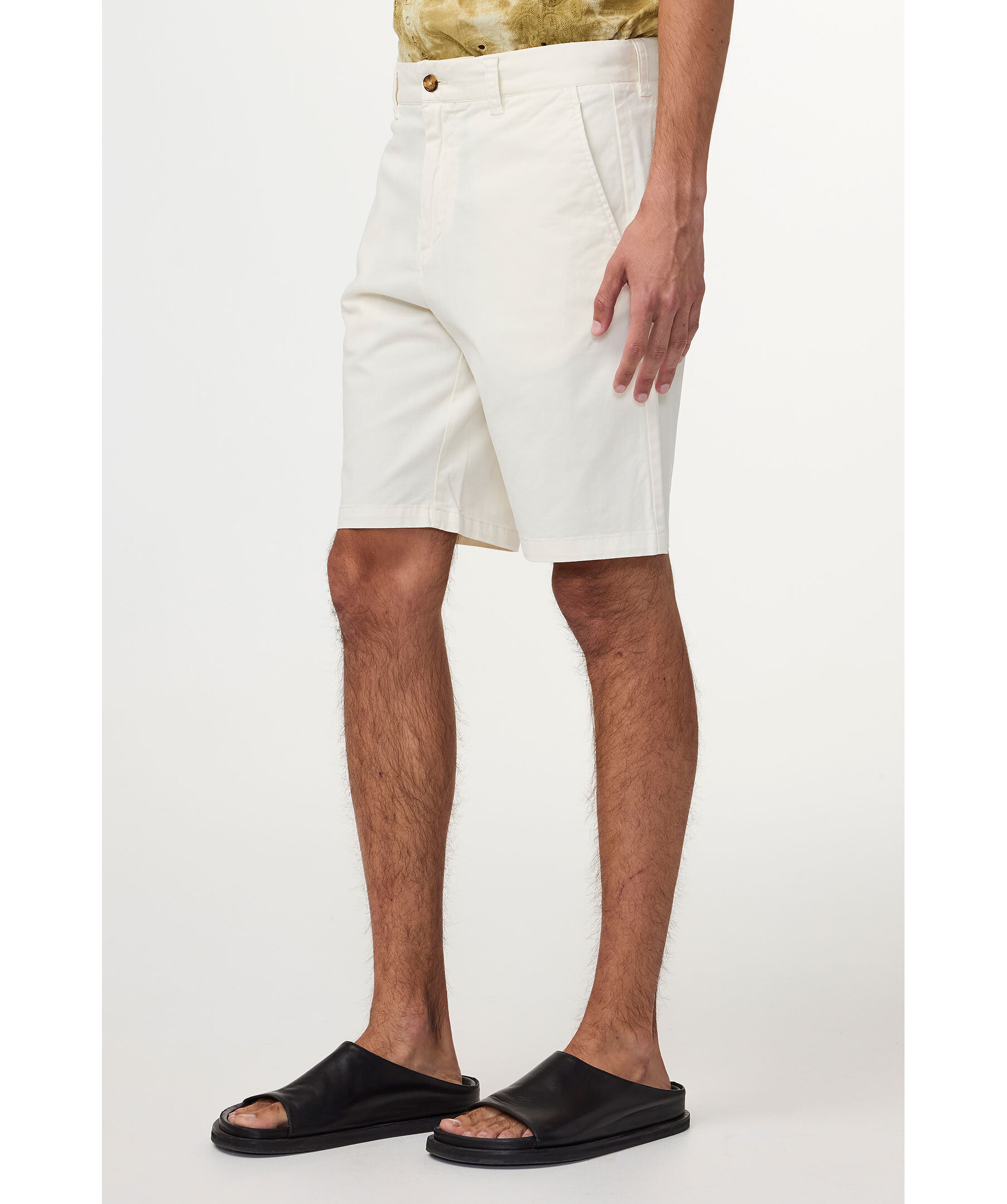 Benvita shorts från NN07. Shortsen har bälteshällor i midjan, två sidfickor samt två passpoalfickor bak. Plagget har färgats för att få en subtil patina och ett vältvättat utseende. Tillverkad i ekologisk bomullstwill med stretch.