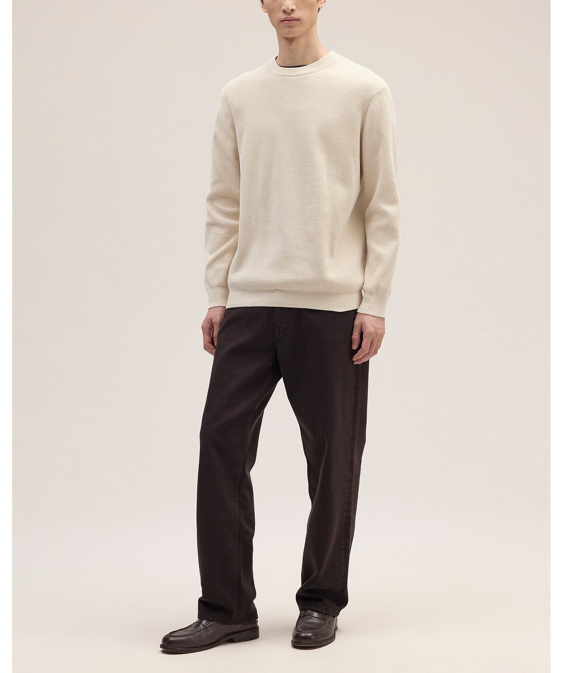 Off‑white tröja Danny från NN07 med regular fit, mock‑neck‑krage och halvlång dragkedja – ett mjukt och ribbstickat vardagsplagg som fungerar lika bra med jeans som under en jacka på kyligare dagar.