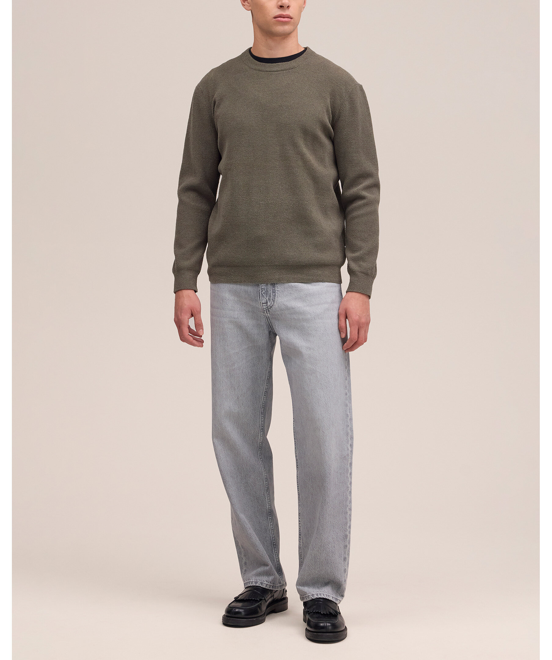 Grågrön tröja från NN07 med regular fit, mock‑neck‑krage och halvlång dragkedja – ett mjukt och ribbstickat vardagsplagg som fungerar lika bra med jeans som under en jacka på kyligare dagar.