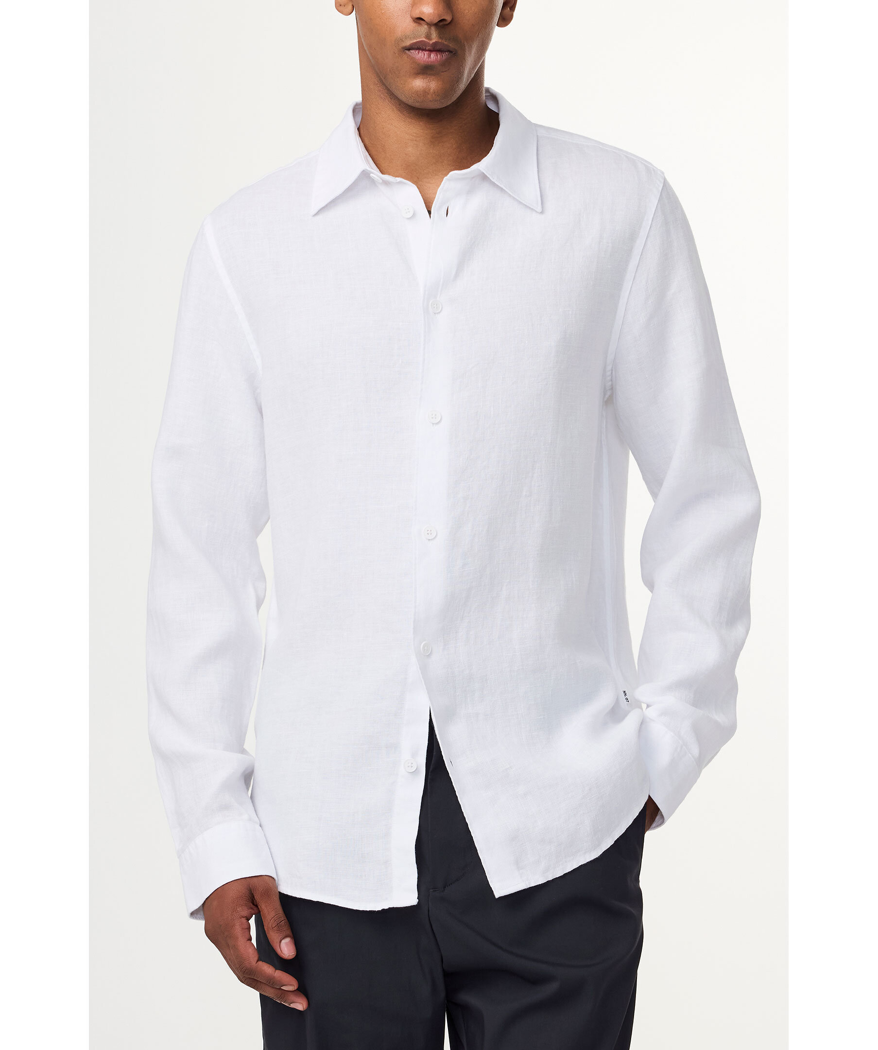 Vit linneskjorta från NN07. Skjortan stängs med matchande knappar och är tillverkad i 100% linne.