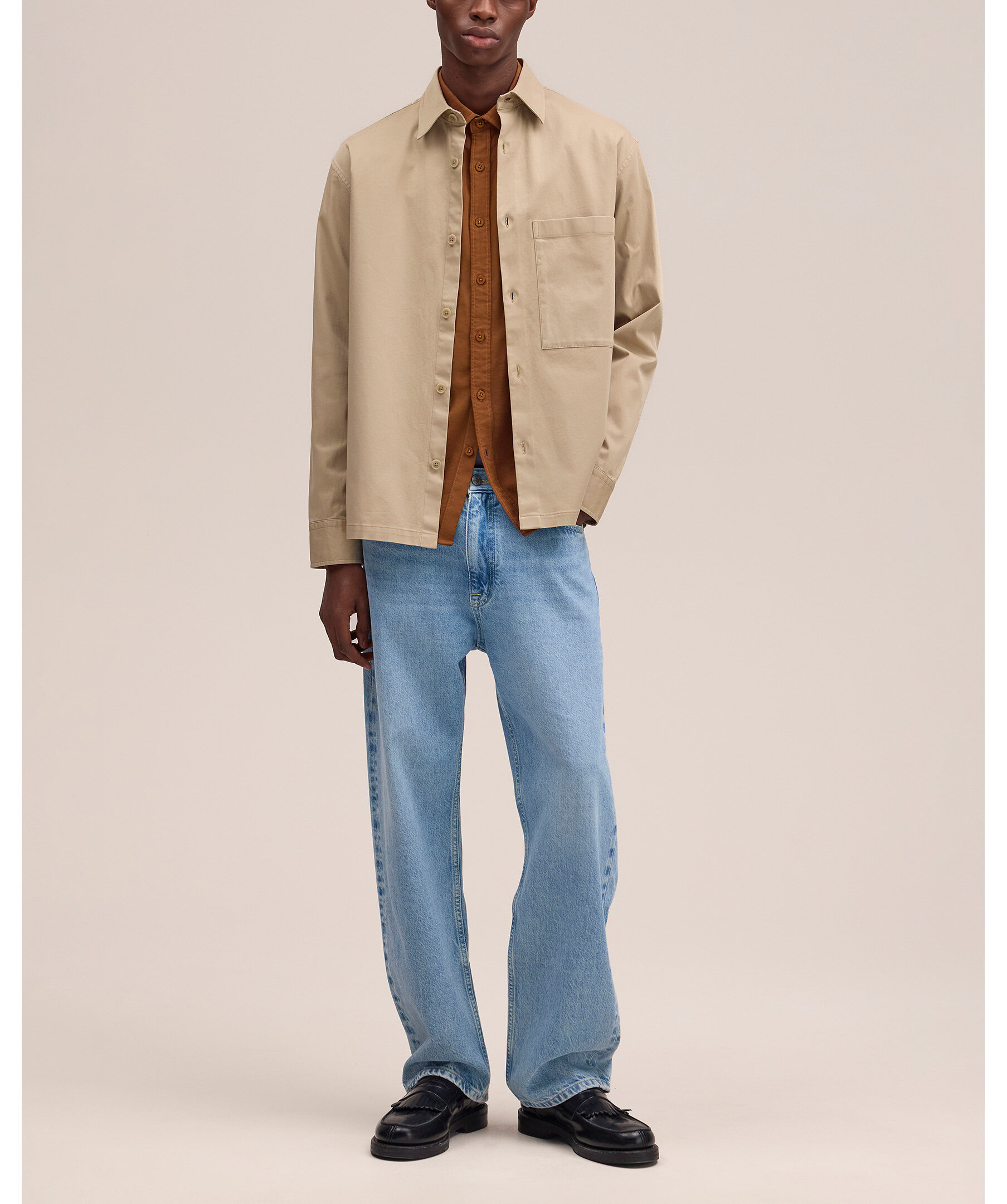 Beige skjorta tillverkad av krispig, slät kavaleritwill i ekologisk bomull med extra bekväm stretch. Har knappar i ärmsluten, NN.07-logotypknappar och en bröstficka.
