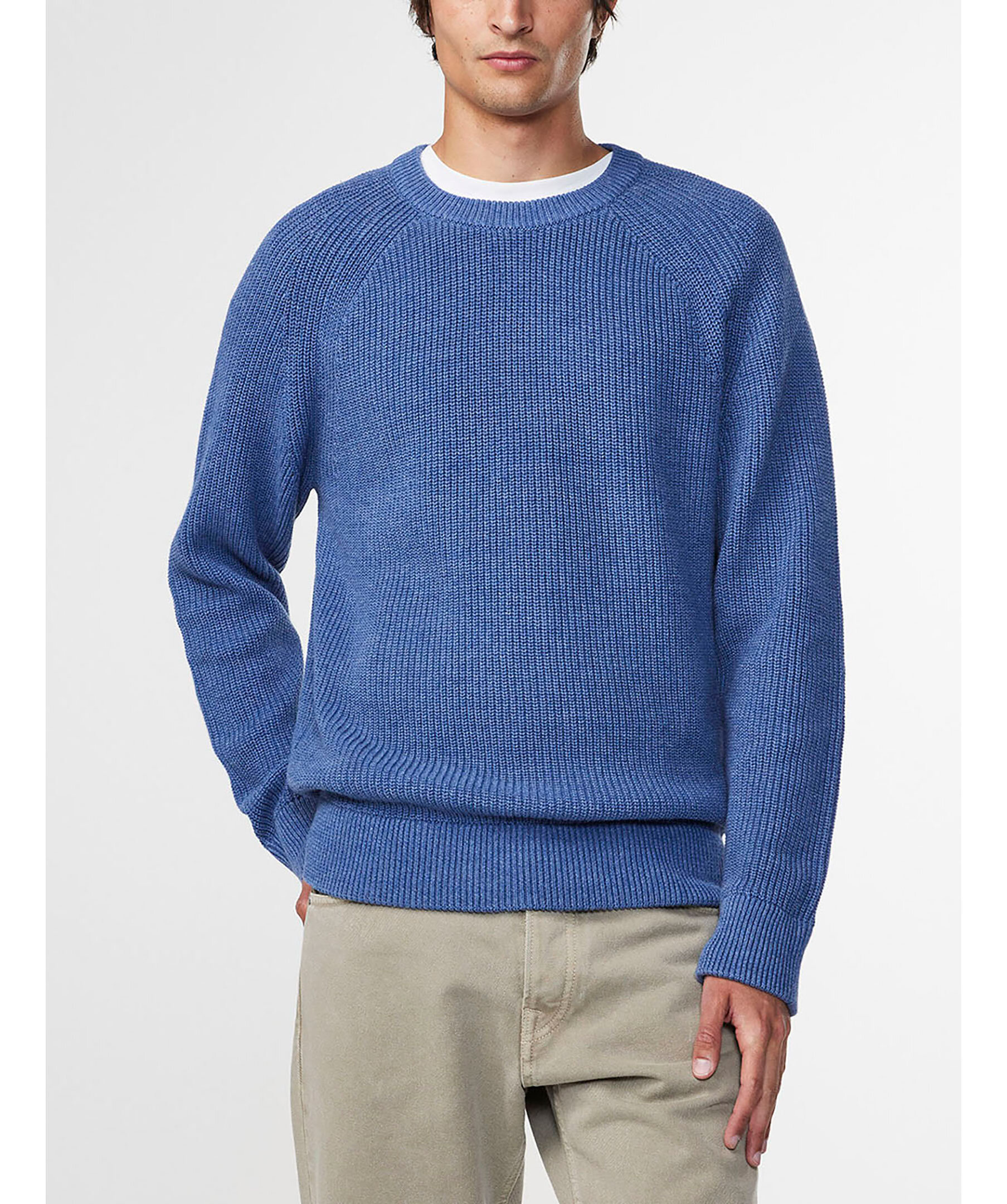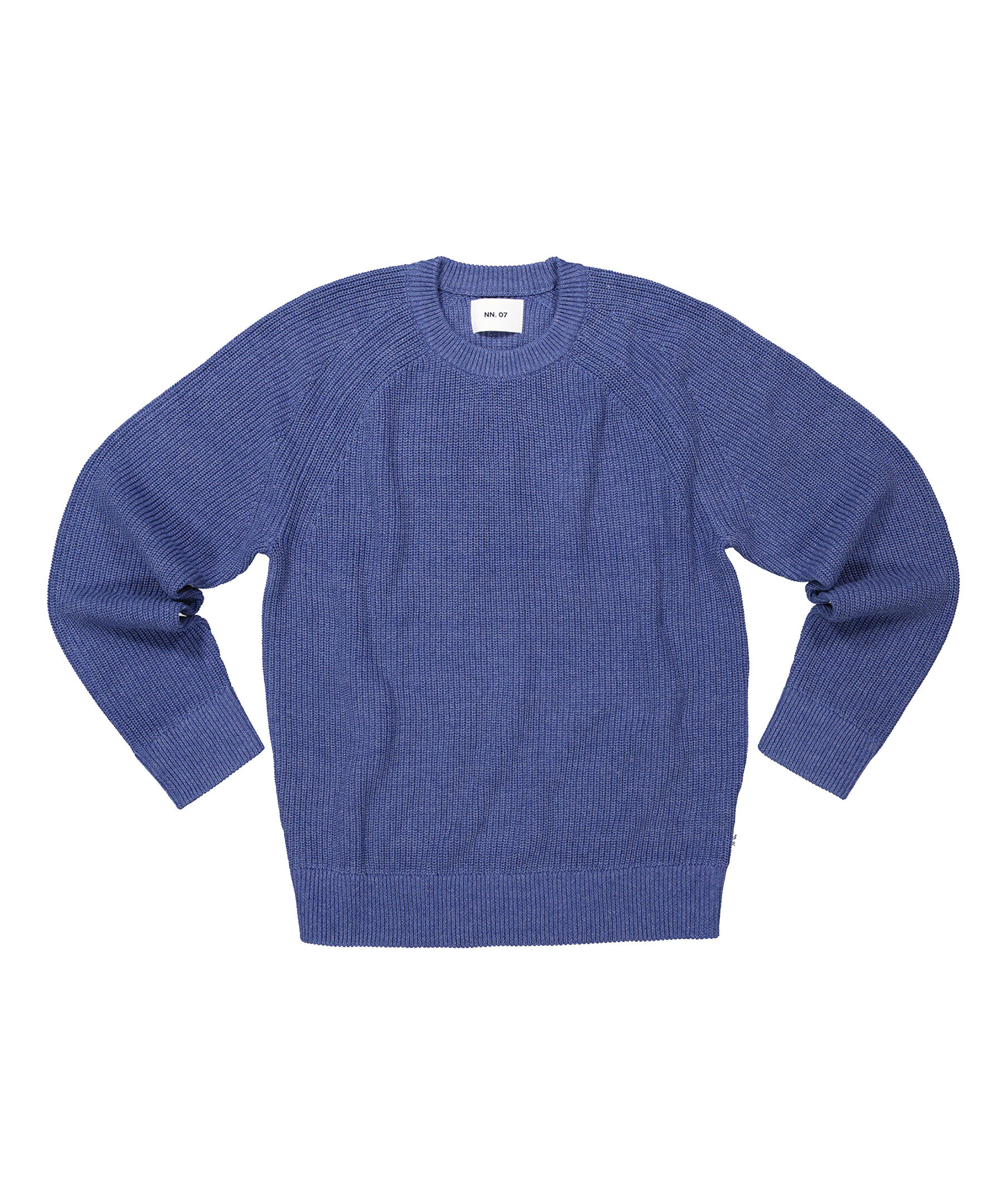 Blå stickad crewneck från NN07. Tillverkad i mjuk bomull, stickad i en halvkoftasöm. Ribbstickad halsringning samt plaggslut. Normal passform.