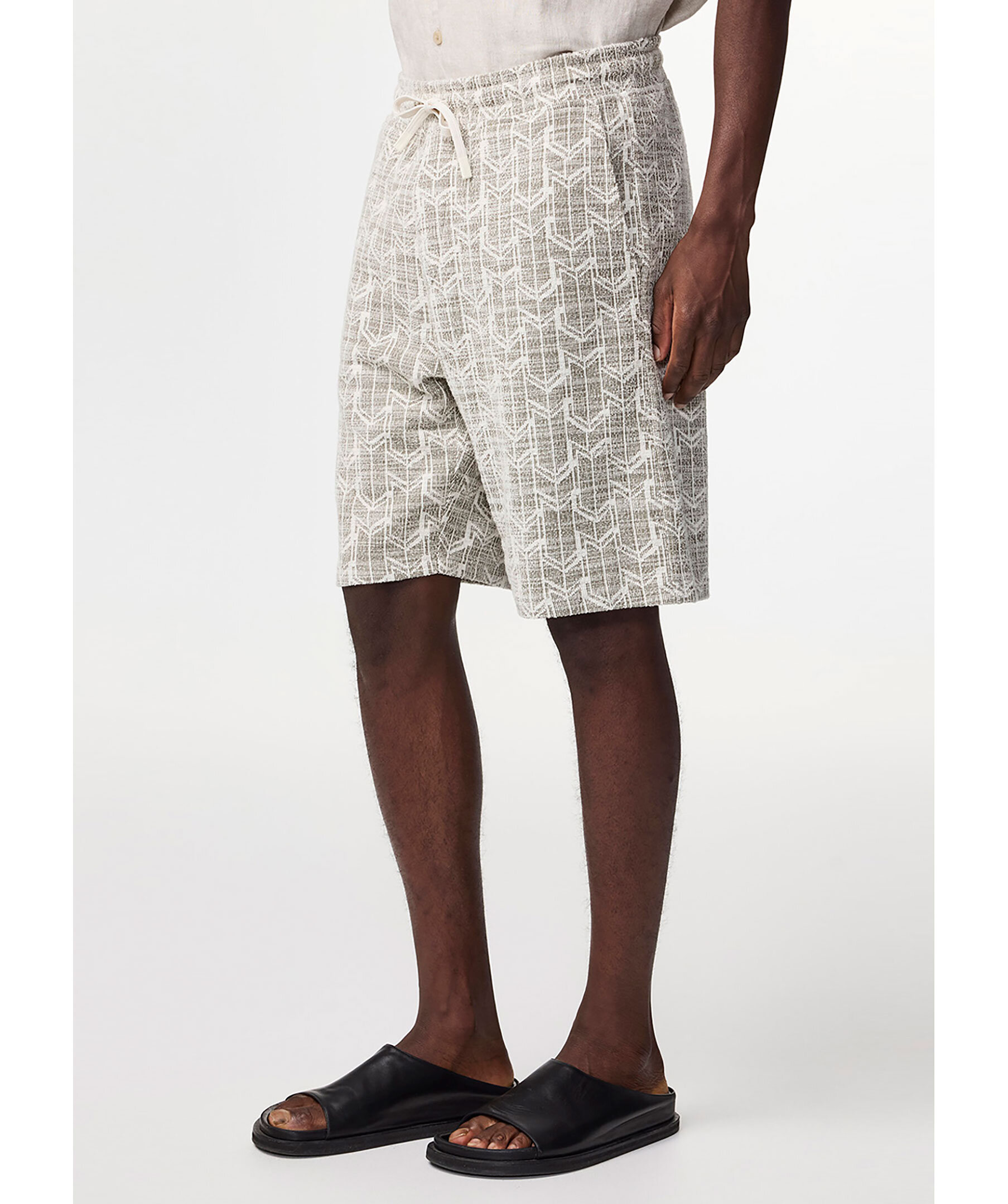 Gröna, mönstrade och stickade boucle-shorts från NN07. Shortsen är stickade i en heltäckande bouclé jacquard-väv och har elastisk midja med dragsko samt två sidfickor och en bakficka. Tillverkade i en bomull- och polyesterblandning.